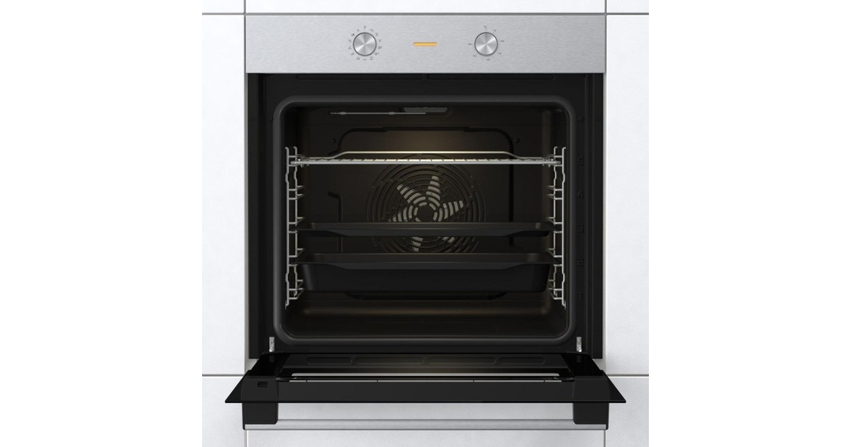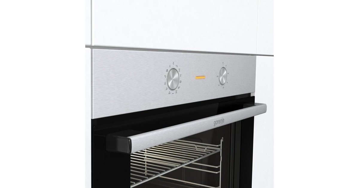 Der Einbaubackofen gorenje BO6717E03X in Edelstahl überzeugt mit einem Nutzinhalt von 77 Litern und der Energieeffizienzklasse A. Die verschiedenen Beheizungsarten machen das Backen und Garen zu einer Leichtigkeit. Das gewünschte Heizprogramm lässt sich über die PushPull Bedienknebel bequem einstellen und dank der 2-fach verglasten Backofentür und der Innenbeleuchtung sind die Speisen selbst bei geschlossener Tür während der Zubereitung immer im Blick. Für eine leichtere Reinigung ist der BO6717E03X mit EcoClean Email beschichtet und besitzt zudem die AquaClean-Funktion. In punkto Sicherheit glänzt der BO6717E03X mit einem dynamischen Kühlgebläse (DC+) und einer Compact Door.Art.-Nr.: 1808086