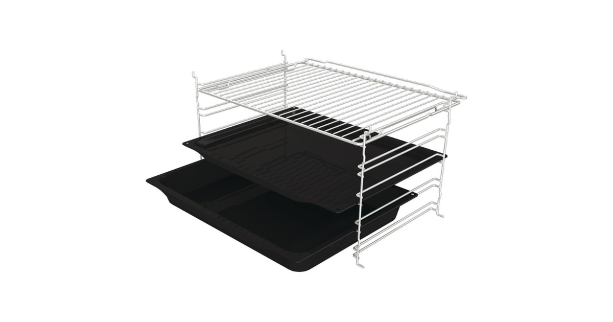 1 Fettpfanne, 1 Backblech, 1 Grillrost, Seitliche Einhängegitter |