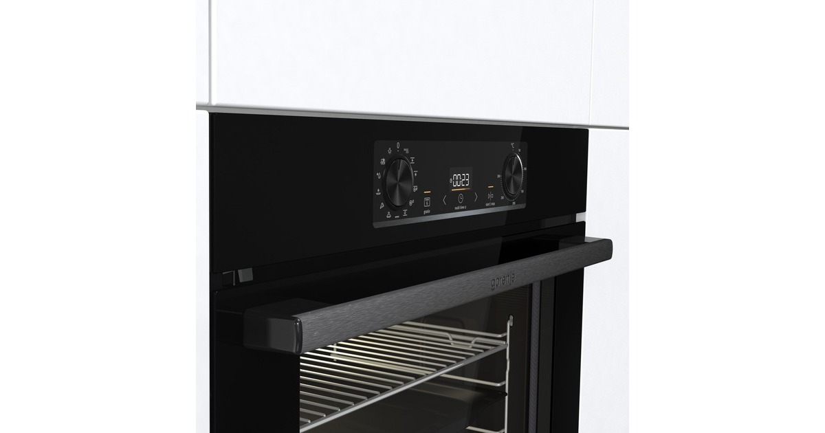 Der Einbaubackofen gorenje BPS6737E14BG in Schwarz überzeugt mit einem Nutzinhalt von 77 Litern und der Energieeffizienzklasse A+. Die verschiedenen Beheizungsarten machen das Backen und Garen zu einer Leichtigkeit. Das gewünschte Heizprogramm lässt sich über die PushPull Bedienknebel bequem einstellen und dank der verglasten Backofentür und der Innenbeleuchtung sind die Speisen selbst bei geschlossener Tür während der Zubereitung immer im Blick. Für eine leichtere Reinigung ist der BPS6737E14BG mit EcoClean Email beschichtet und besitzt zudem die Pyrolyse-Funktion. In punkto Sicherheit glänzt der BPS6737E14BG mit einem dynamischen Kühlgebläse (DC+) und einer Quadro Ultra CoolDoor.Art.-Nr.: 1808106