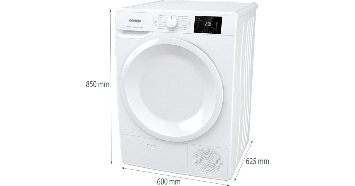 Der Kondensationstrockner gorenje DNE8B in weiß überzeugt mit einer Aufnahmekapazität von bis zu 8 kg an Wäsche und 16 Trockenprogrammen. Die Kondensations-Effizienzklasse A sorgt für deutlich weniger Luftfeuchtigkeit in den Räumen. Über das übersichtliche Bedienpanel mit zentral positioniertem Programmknebel kann der Trockenvorgang in nur drei Schritten gestartet werden. Das Display informiert zuverlässig über die Restzeit des ausgewählten Trockenprogramms. AirRefresh sorgt für ein schnelles Auffrischen der Wäsche und dank dem Knitterschutz hat man weniger Bügelarbeit. Für optimale Sicherheit im Haushalt sorgt beim DNE8B eine Kindersicherung sowie ein Signal bei vollem Kondenswasserbehälter.Art.-Nr.: 1915514