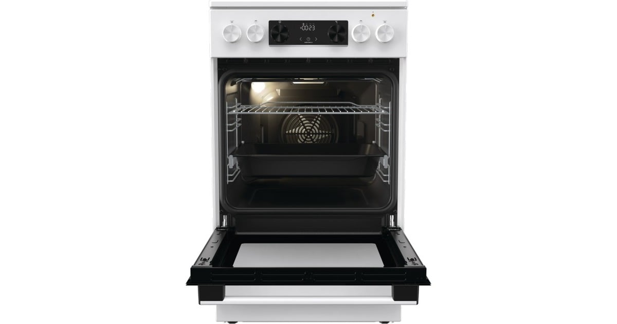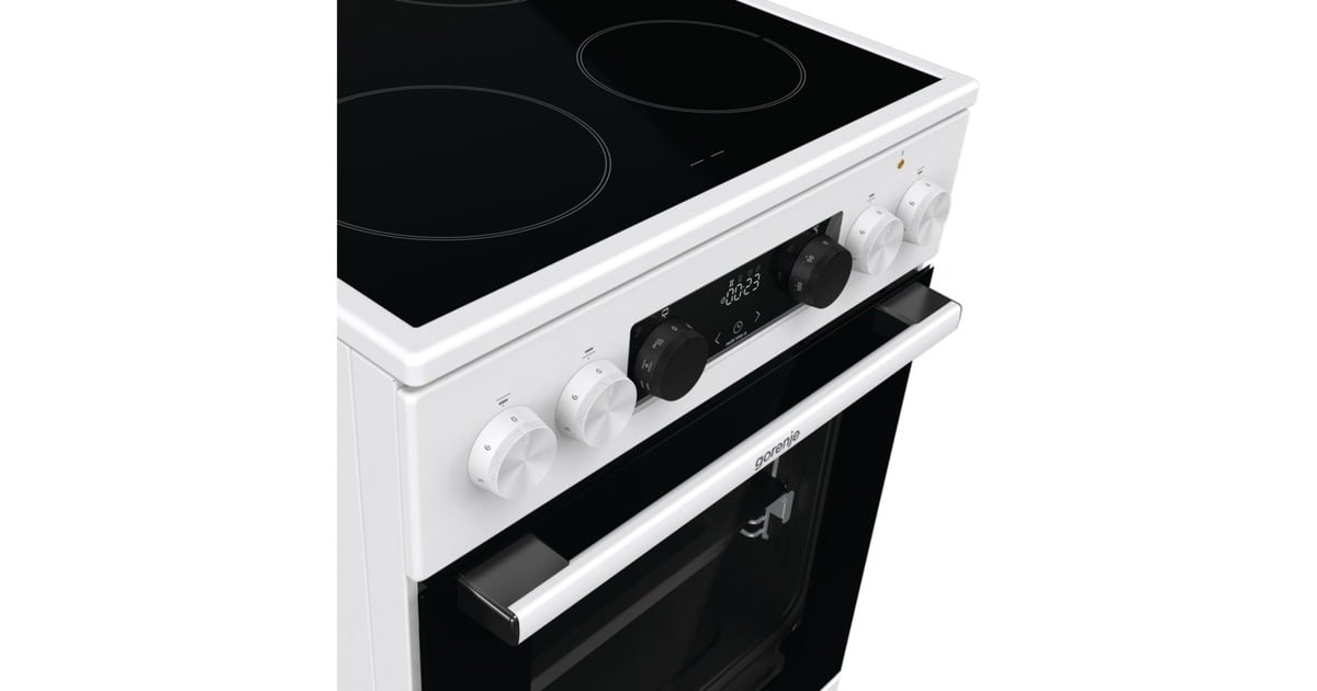 Der Elektroherd GEC5C41WG überzeugt mit der Energieeffizienzklasse A und schickem Design. Der Garraum des GEC5C41WG bietet einen Nutzinhalt von 70 Litern. Der Elektrobackofen besticht durch sein Großflächengrill. Die hochwertige Supreme-Beschichtung in Kombination mit der AquaClean Selbstreinigungsfunktion macht die Reinigung noch effizienter. Das Elektro-Kochfeld aus Glaskeramik stellt vier Kochzonen zur Verfügung. In Puncto Sicherheit bietet der GEC5C41WG eine Restwärmeanzeige. Art.-Nr.: 1873953