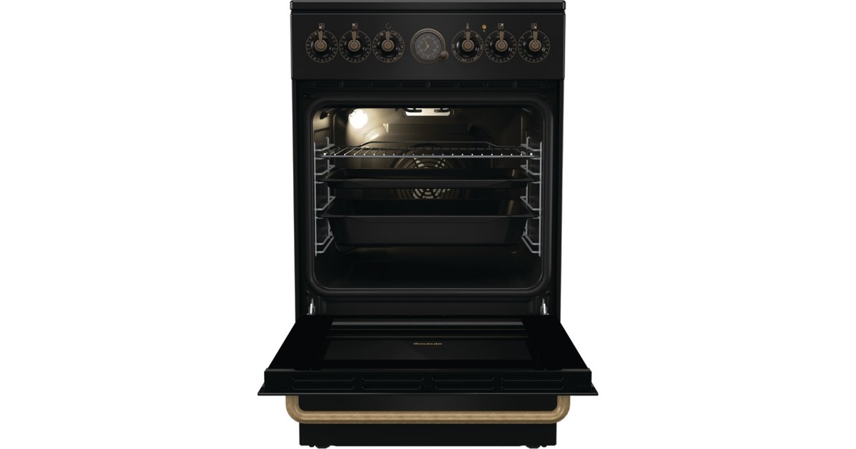 Der Elektroherd GECS5B70CLB überzeugt mit der Energieeffizienzklasse A und einem klassischen Design. Der Garraum des GECS5B70CLB bietet einen Nutzinhalt von 70 Litern. Der Elektroherd besticht durch sein Großflächengrill und ermöglich es mit Heißluft mit Dampfzugabe zu backen. Die hochwertige Supreme-Beschichtung in Kombination mit der AquaClean Selbstreinigungsfunktion macht die Reinigung noch effizienter. Das Elektro-Kochfeld aus Glaskeramik stellt vier Kochzonen zur Verfügung. Darunter eine Zweikreis-Kochzone. Somit kann auch größeres Kochgeschirr zum Einsatz kommen. In Puncto Sicherheit bietet der GECS5B70CLB eine Restwärmeanzeige. Art.-Nr.: 1873964