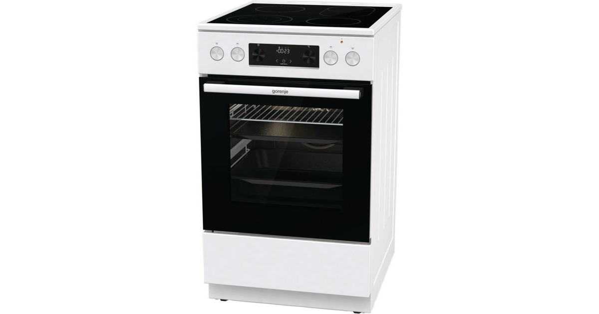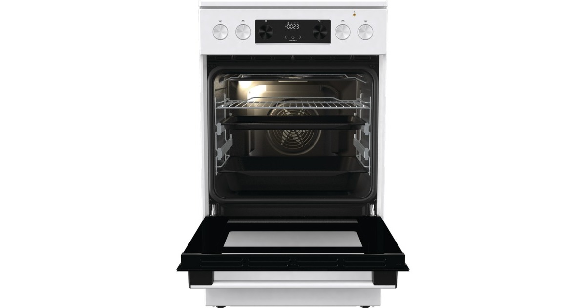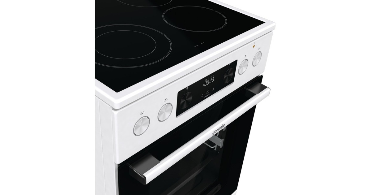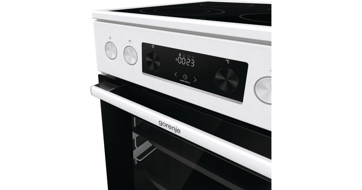 Der Elektroherd GECS5C60WPA überzeugt mit der Energieeffizienzklasse A und schickem Design. Der Garraum des GECS5C60WPA bietet einen Nutzinhalt von 70 Litern. Der Multifunktionsbackofen besticht durch sein Großflächengrill und ermöglich es mit Heißluft mit Dampfzugabe zu backen. Die hochwertige SilverMatte-Beschichtung in Kombination mit der AquaClean Selbstreinigungsfunktion macht die Reinigung noch effizienter. Das Elektro-Kochfeld aus Glaskeramik stellt vier Kochzonen zur Verfügung. Darunter eine Zweikreis-Koch- und eine Ovale Ringzone. Somit können auch größeres Kochgeschirr und Bräter zum Einsatz kommen. In Puncto Sicherheit bietet der GECS5C60WPA ein Kühlgebläse und eine Restwärmeanzeige. Art.-Nr.: 1873951