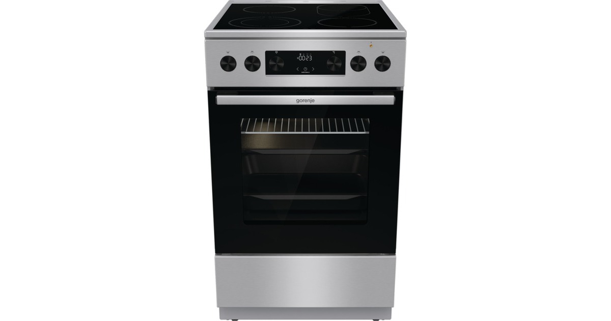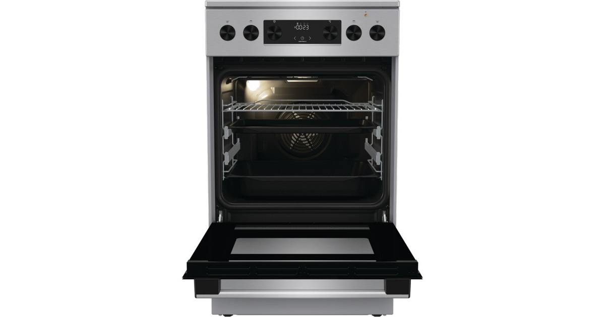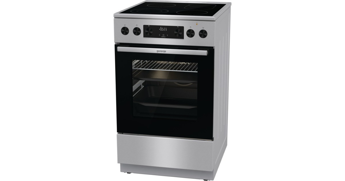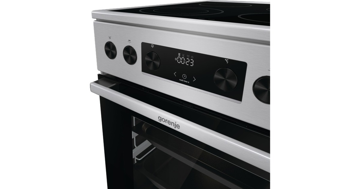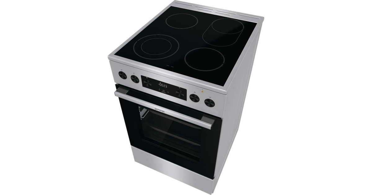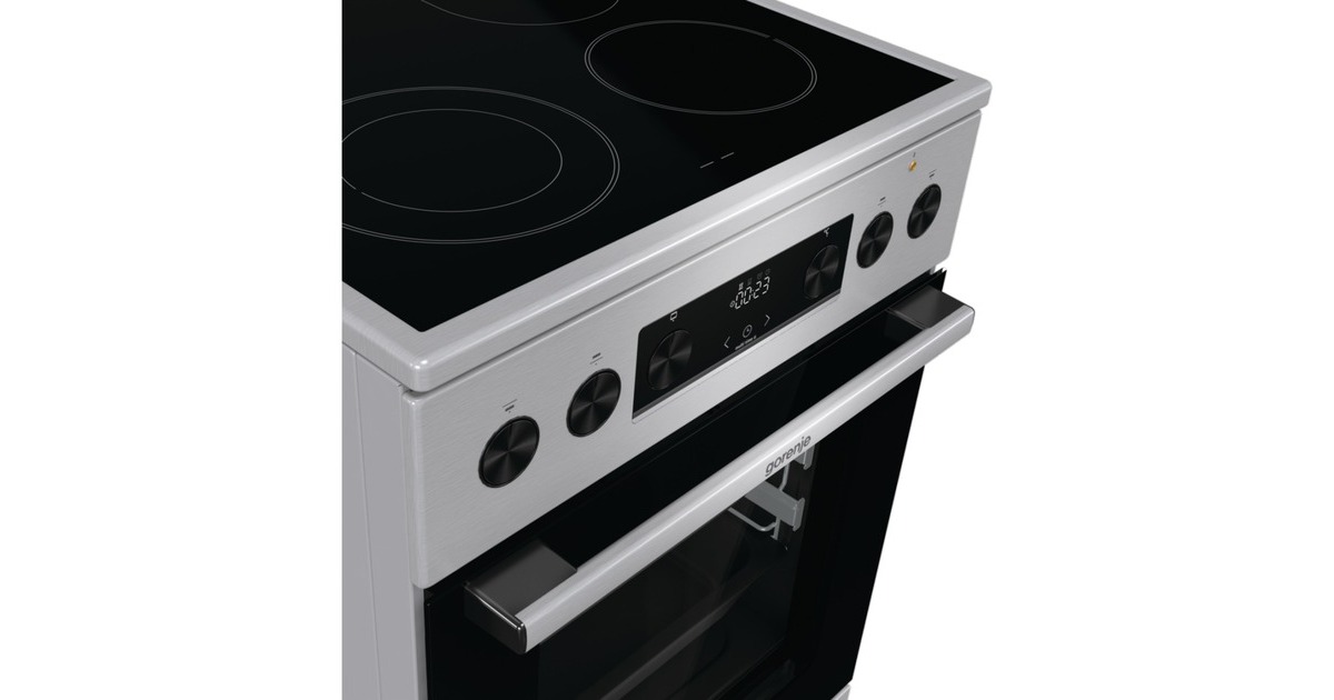 Der Elektroherd GECS5C70XPA überzeugt mit der Energieeffizienzklasse A und schickem Design. Der Garraum des GECS5C70XPA bietet einen Nutzinhalt von 70 Litern. Der Multifunktionsbackofen besticht durch sein Großflächengrill und ermöglich es mit Heißluft mit Dampfzugabe zu backen. Die hochwertige SilverMatte-Beschichtung in Kombination mit der AquaClean Selbstreinigungsfunktion macht die Reinigung noch effizienter. Das Elektro-Kochfeld aus Glaskeramik stellt vier Kochzonen zur Verfügung. Darunter eine Zweikreis-Koch- und eine Ovale Ringzone. Somit können auch größeres Kochgeschirr und Bräter zum Einsatz kommen. In Puncto Sicherheit bietet der GECS5C70XPA ein Kühlgebläse und eine Restwärmeanzeige. Art.-Nr.: 1873948