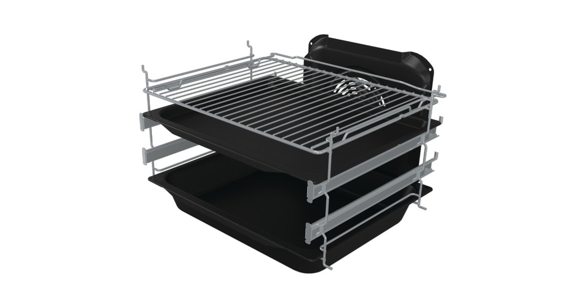 1 Backblech, 1 Fettpfanne, 1 Grillrost, 2fach Teleskopauszüge |