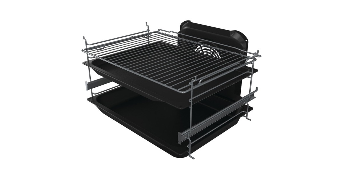 1 Backblech, 1 Fettpfanne, 1 Grillrost, 1fach Teleskopauszüge |