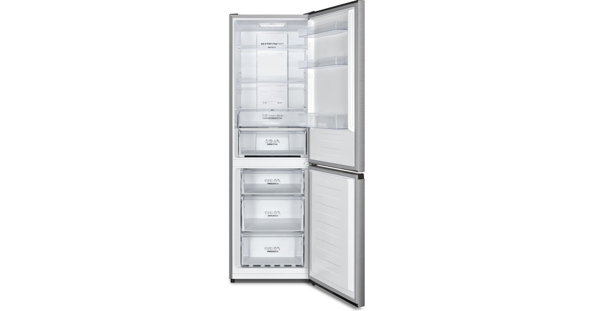 Der Kühl-/Gefrierkombination gorenje N619EAXL4 ist mit einem Gesamtnutzinhalt von 304 Litern ideal für den mittelgroßen Haushalt geeignet. Der 207 Liter umfassende Kühlbereich ist mit zwei Glasabstellflächen, einer CrispZone mit Feuchteregler für Obst und Gemüse, einer Convert FreshZone sowie drei Türfächern ausgestattet. Die LED-Innenbeleuchtung bietet ausgezeichnete und höchst effiziente Lichtverhältnisse auf die gekühlten Speisen. Der Gefrierbereich der N619EAXL4 umfasst 97 Liter und ist mit drei Gefrierschubladen ausgestattet. Für das schnelle Einfrieren von Lebensmitteln steht die FastFreeze-Funktion zur Verfügung. NoFrost Plus verhindert im Gefrierteil vollständig die Eisbildung, wodurch es nicht mehr abgetaut werden muss, und sorgt im Kühlteil für ein optimales Mikroklima für frische Lebensmittel dank der intensiven Zirkulation ionisierter Luft. Die Funktions- und Temperatursteuerung erfolgt komfortabel über das außenligende LED-Display. Mit einem Stromverbrauch von 243 kWh im Jahr ist die N619EAXL4 in die Energieeffizienzklasse E eingestuft.Art.-Nr.: 1755759