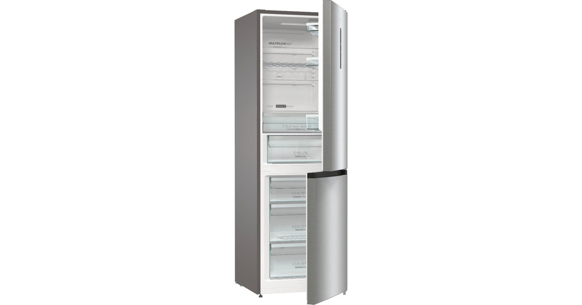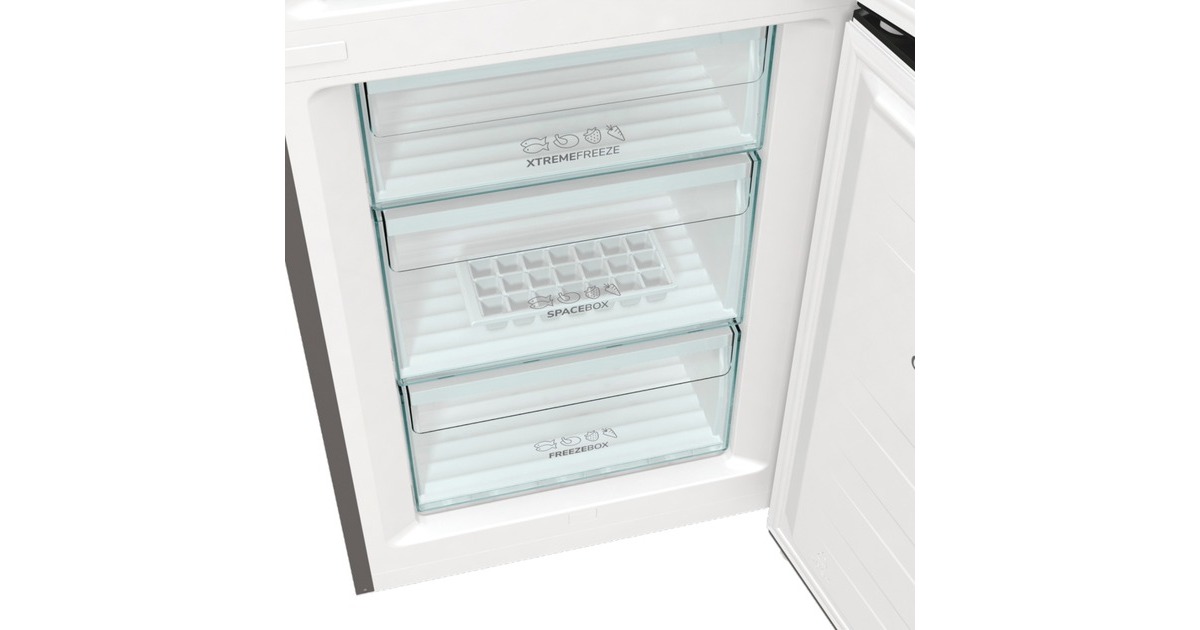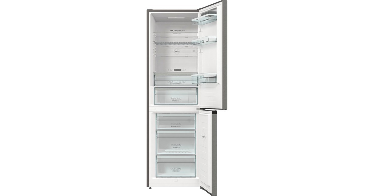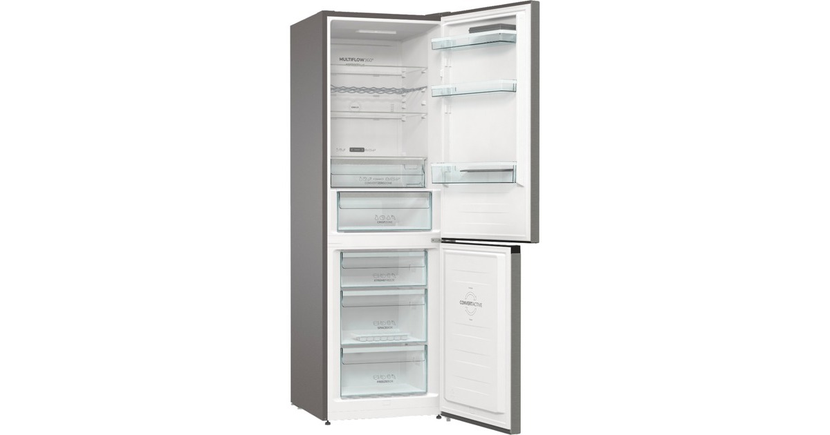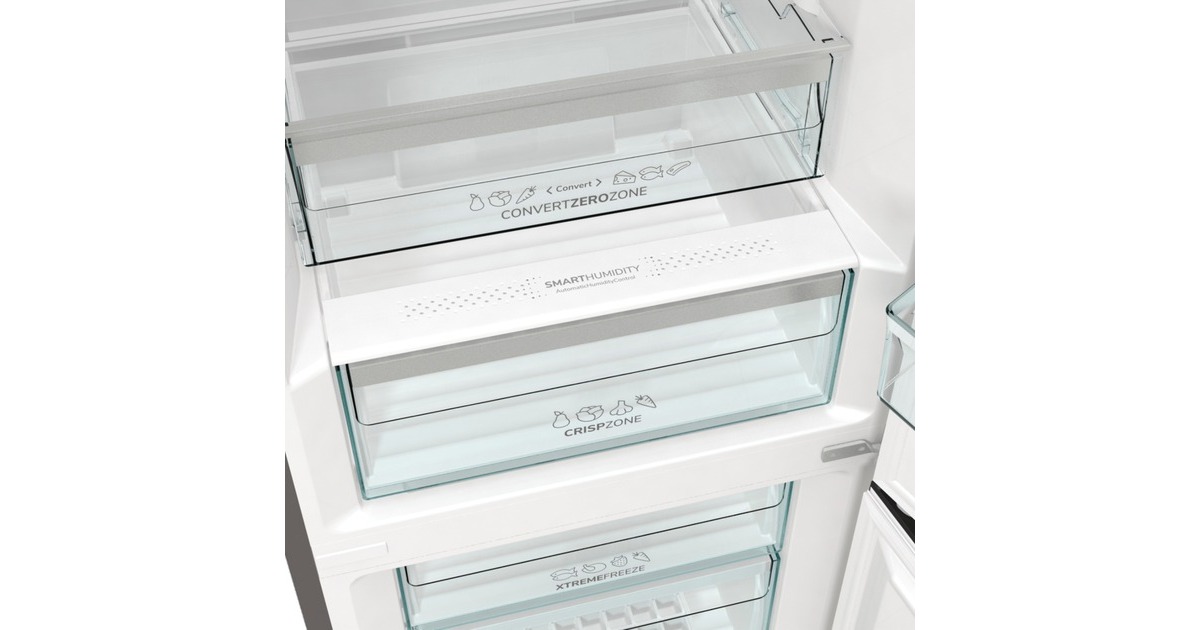 Die Kühl-/Gefrierkombination gorenje NRC6194SXL4 ist mit einem Gesamtnutzinhalt von 326 Litern ideal für den mittelgroßen Haushalt geeignet. Das 220 Liter umfassende Kühlteil stellt drei Glasabstellflächen, eine CrispZone mit Feuchteregler, eine 26 Liter große Convert ZeroZone sowie drei Türfächer für die übersichtliche Lagerung frischer Lebensmittel zur Verfügung. Das Gefrierteil umfasst 106 Liter und ist mit drei Gefrierschubladen, davon ein XtremeFreeze-Schubfach, ausgestattet. NoFrost Plus verhindert im Gefrierteil vollständig die Eisbildung und hält somit auch den Energieverbrauch niedrig. Im Kühlteil sorgen IonAir und MultiFlow 360° für ein optimales Mikroklima und frische Lebensmittel dank der intensiven Zirkulation ionisierter Luft. Ein besonderes Feature der NRC6194SXL4 ist die ConvertActive-Funktion, mit der man mit nur einem Knopfdruck das Gefrierfach zu einem Kühlfach oder zu einer großen ZeroZone verwandelt. Das intelligente AdaptTech-System hält eine konstante Temperatur im Kühlschrank aufrecht, unabhängig davon, wie oft man die Tür öffnet. Alle Einstellung sowie die Temperaturregelung erfolgt komfortabel über das außenliegende Display. Mit einem Stromverbrauch von 165 kWh im Jahr ist die NRC6194SXL4 in die Energieeffizienzklasse C eingestuft.Art.-Nr.: 1815002