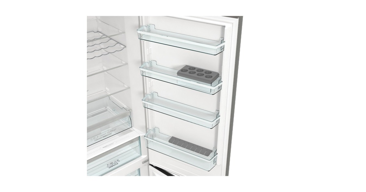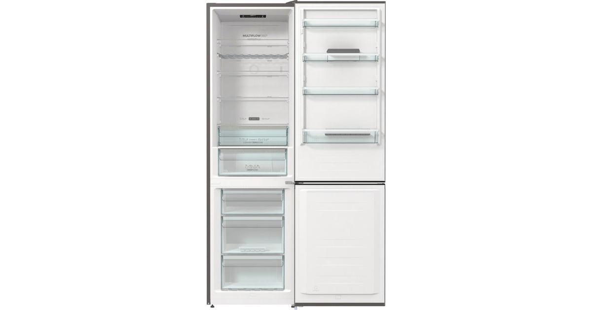 Die Kühl-/Gefrierkombination gorenje NRC620BSXL4 ist mit einem Gesamtnutzinhalt von 361 Litern ideal für den mittelgroßen Haushalt geeignet. Das 255 Liter umfassende Kühlteil stellt fünf Glasabstellflächen, eine CrispZone mit Feuchteregler, eine 26 Liter große Convert ZeroZone sowie vier Türfächer für die übersichtliche Lagerung frischer Lebensmittel zur Verfügung. Das Gefrierteil umfasst 106 Liter und ist mit drei Gefrierschubladen, davon ein XtremeFreeze-Schubfach, ausgestattet. NoFrost Plus verhindert im Gefrierteil vollständig die Eisbildung und hält somit auch den Energieverbrauch niedrig. Im Kühlteil sorgen IonAir und MultiFlow 360° für ein optimales Mikroklima und frische Lebensmittel dank der intensiven Zirkulation ionisierter Luft. Ein besonderes Feature der NRC620BSXL4 ist die ConvertActiv-Funktion, mit der man mit nur einem Knopfdruck das Gefrierfach zu einem Kühlfach oder zu einer großen ZeroZone verwandelt. Das intelligente AdaptTech-System hält eine konstante Temperatur im Kühlschrank aufrecht, unabhängig davon, wie oft man die Tür öffnet. Alle Einstellung sowie die Temperaturregelung erfolgt komfortabel über das außenliegende Display. Mit einem Stromverbrauch von 135 kWh im Jahr ist die NRC620BSXL4 in die Energieeffizienzklasse B eingestuft.Art.-Nr.: 1910361