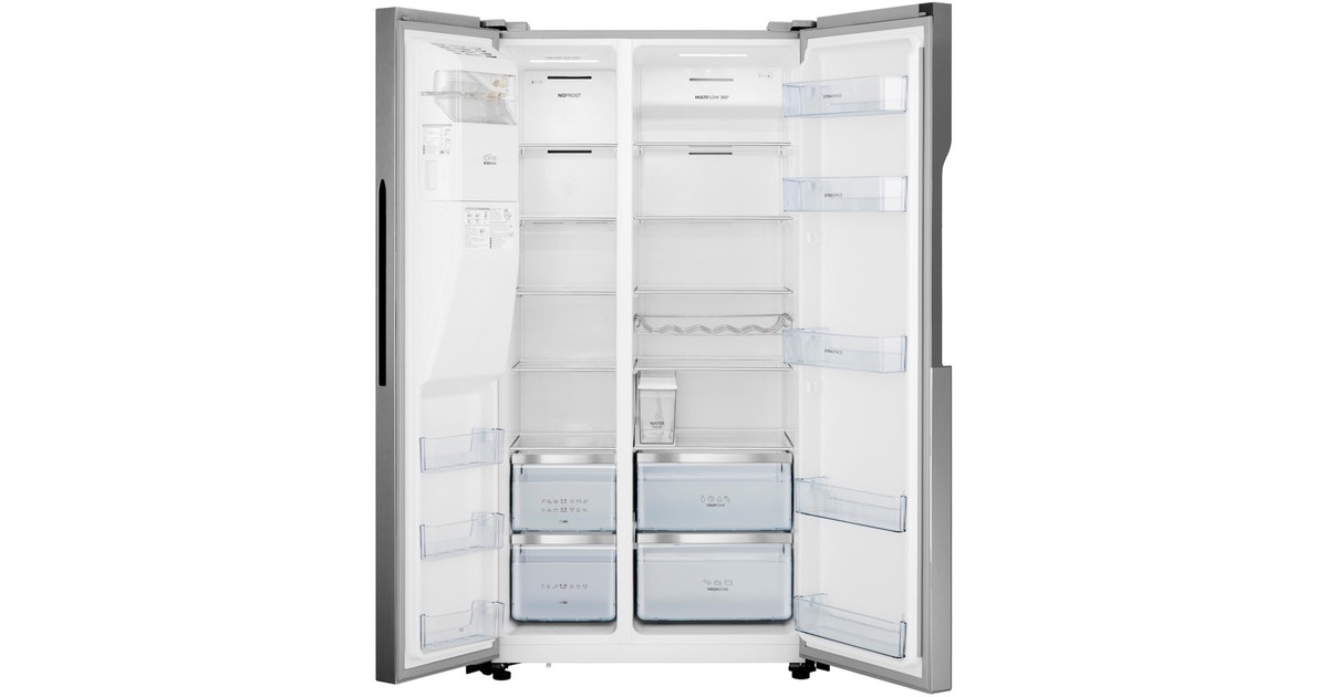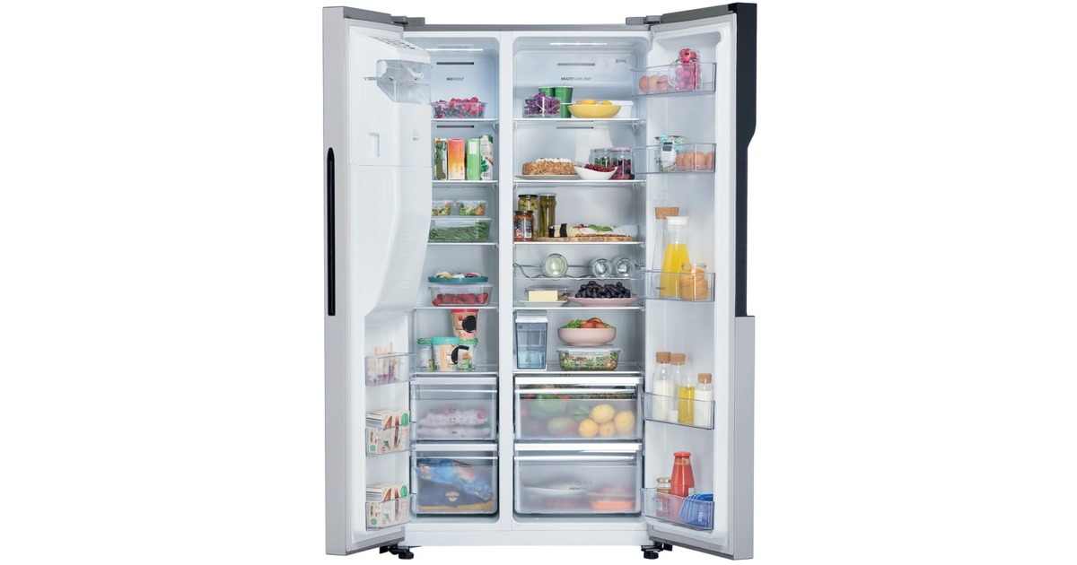 Der Side-by-Side gorenje NRS9EVX ist mit einem Gesamtnutzinhalt von 566 Litern ideal für den großen Haushalt geeignet und bietet jede Menge Komfort. Der 375 Liter umfassende Kühlbereich ist mit fünf Glasabstellflächen, einem FreshZone- und einem CrispZone-Schubfach sowie fünf Türfächern ausgestattet. Das MultiFlow-360°-Lüftungssystem verteilt die Luft gleichmäßig im Kühlraum, um eine optimale Luftzirkulation und beste Lagerbedingungen für die Lebensmittel zu bieten. Der Gefrierbereich stellt auf einem Nutzinhalt von 191 Litern ebenfalls fünf Glasabstellflächen, zwei Gefrierschubladen sowie drei Türfächer zur Verfügung und muss dank NoFrost Plus nie wieder mühsam abgetaut werden. Die FastFreeze-Funktion friert die Lebensmittel bei -24°C ein, um die meisten Mineralien in den Lebensmitteln zu erhalten, und mit dem EcoMode-Programm kann man sehr viel Energie sparen, wenn man für längere Zeit außer Haus ist. Die Temperaturregelung und Funktionssteuerung des NRS9EVX erfolgt bequem über das außenliegende LED-Display. Der berührungsgesteuerte IceMaker mit WaterDispenser verfügt über einen internen Wassertank, sodass man gekühltes Wasser, Crushed Ice und Eiswürfel genießen kann, ohne den Kühlschrank an die Wasserleitung anschließen zu müssen. Mit einem Stromverbrauch von 323 kWh im Jahr ist der NRS9EVX in der Energieeffizienzklasse E eingestuft.Art.-Nr.: 1868369