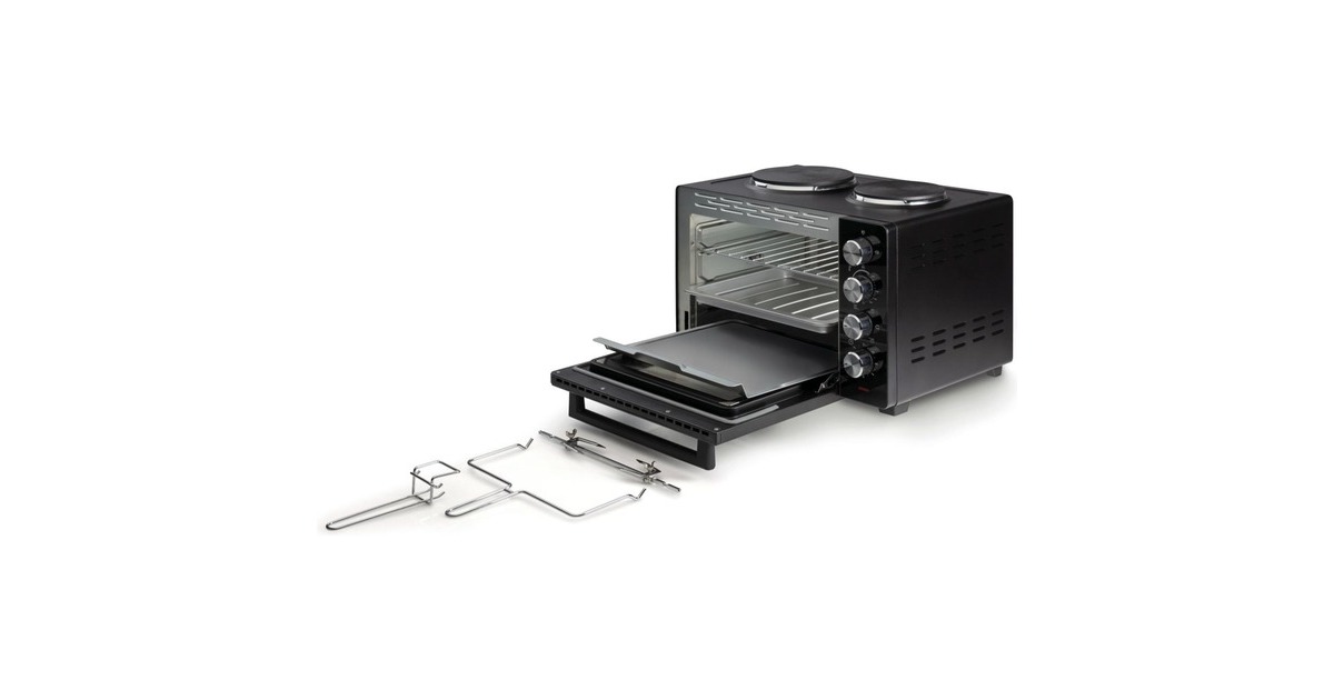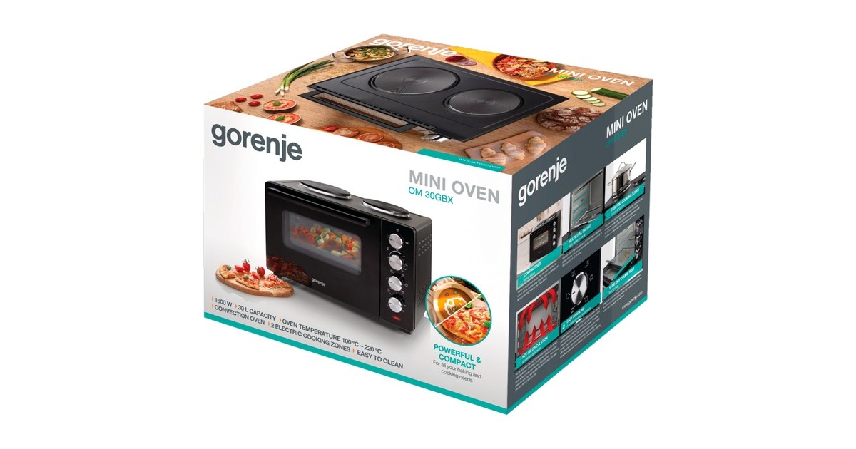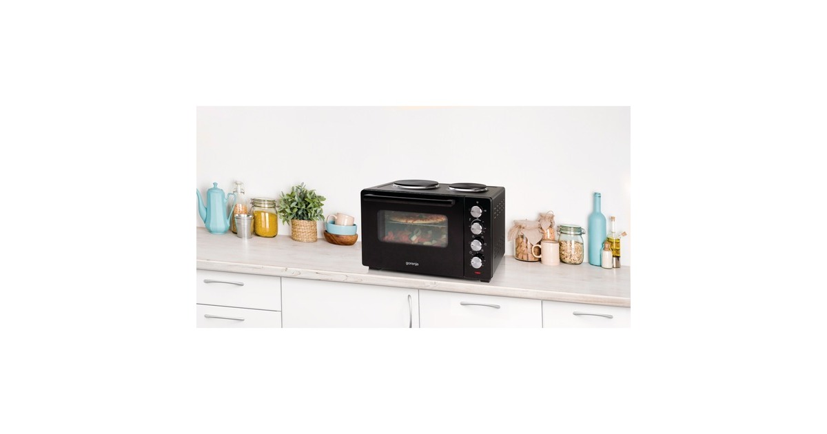 Der gorenje OM30GBX bietet eine Leistung von 1600 W, fünf Ofenmodi und zwei elektrische Kochzonen. So kann dieser Mini-Backofen auch als Miniküche bezeichnet werden. Die Kochzonen können gleichzeitig bedient werden, während der Ofen läuft, so dass man eine perfekte Kombination hat. Man genießt eine komplette Mahlzeit, die im Gorenje Mini-Ofen zubereitet wird.Art.-Nr.: 1919227