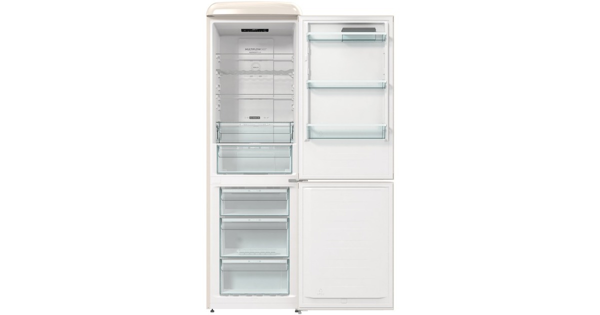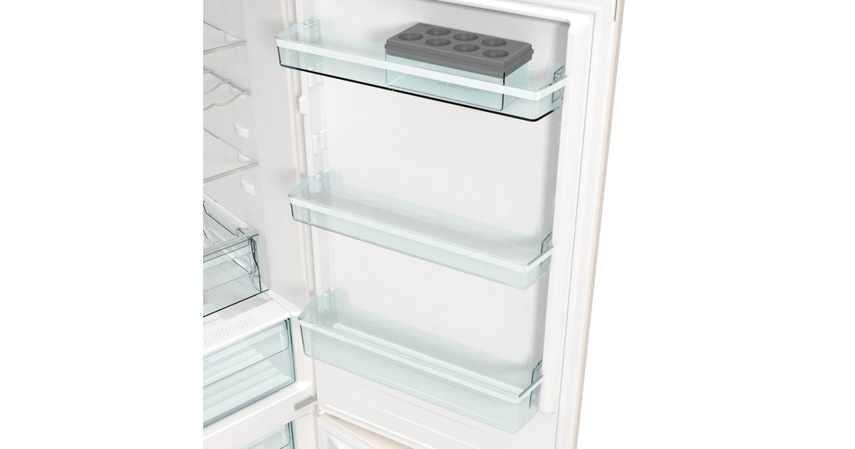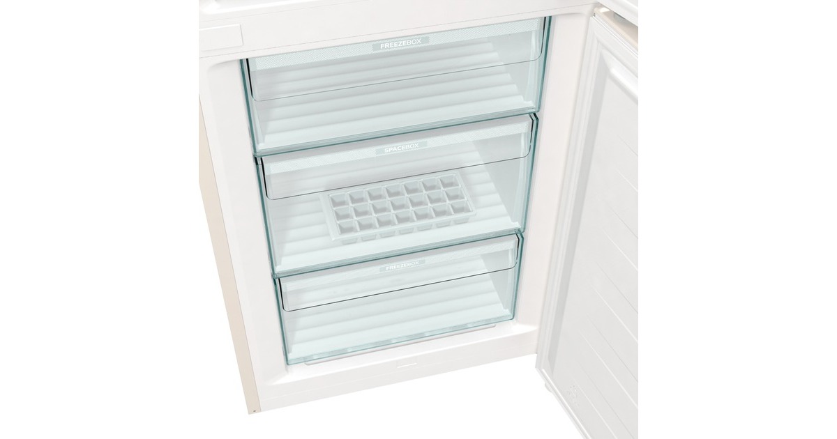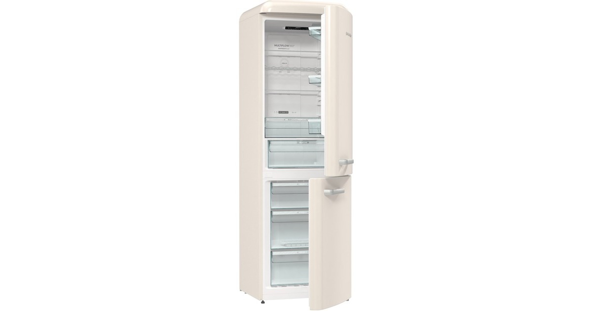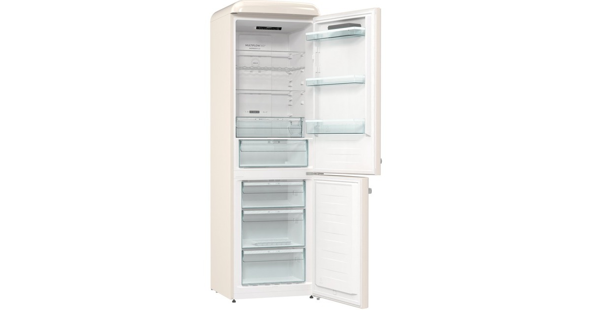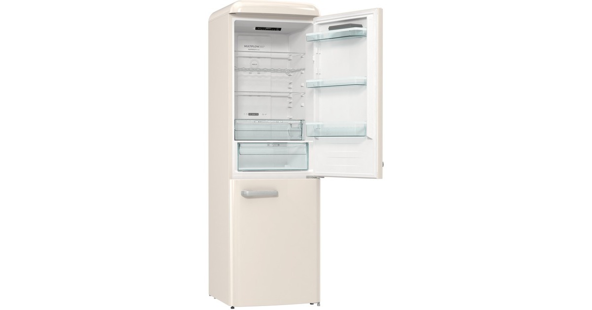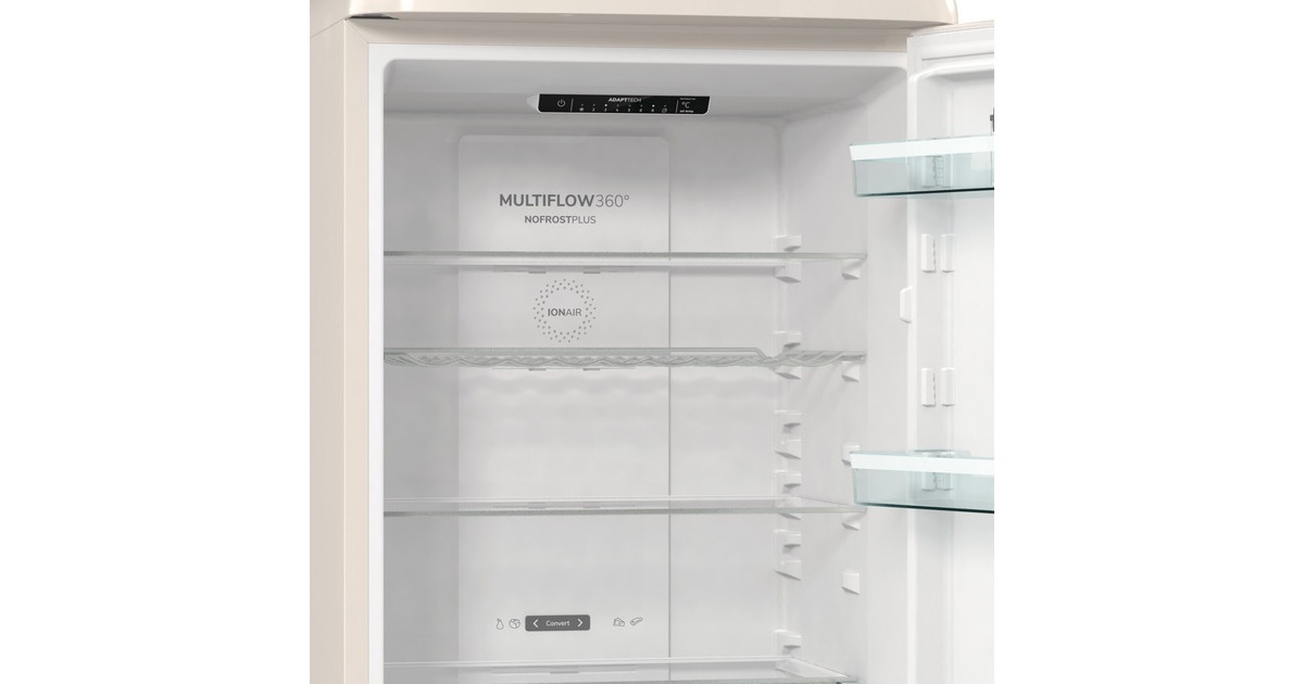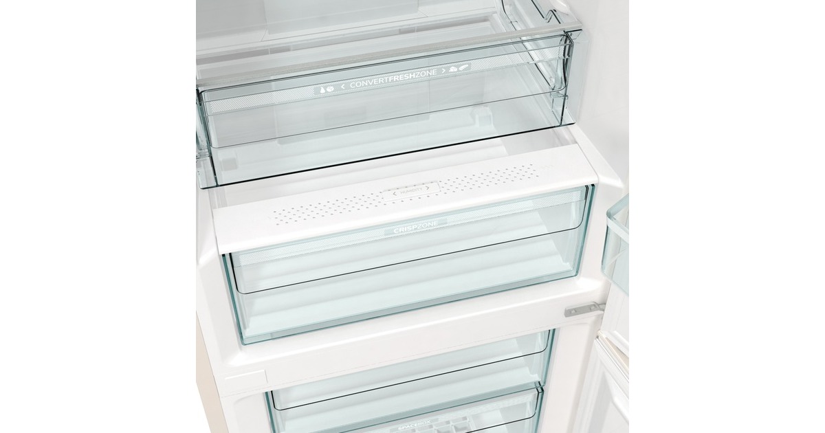 Der Kühl-/Gefrierkombination gorenje ONRK619DC ist mit einem Gesamtnutzinhalt von 300 Litern ideal für den mittelgroßen Haushalt geeignet und ist mit ihrem stilvollen Design einen echter Hingucker in der Küche. Der 204 Liter umfassende Kühlbereich verfügt über drei Glasabstellflächen, davon zwei höhenverstellbar, ein Flaschengitter, eine CrispZone mit Feuchteregler für Obst und Gemüse, eine Convert FreshZone, in der wahlweise Fisch und Fleisch oder Obst und Gemüse gelagert werden kann, sowie drei Türfächer. Im Gerät generierte Negativ-Ionen sorgen kontinuierlich für frische und sauerstoffhaltige Luft und das MultiFlow 360° Luftzirkulationssystem verteilt die ionisierte Luft über 14 Luftkanäle für eine gleichmäßige Temperatur im gesamten Kühlraum. Der Gefrierbereich der ONRK619DC umfasst 96 Liter und ist mit drei Gefrierschubladen, davon eine BigBox für größeres Gefriergut, ausgestattet. NoFrostPlus verhindert die Eisbildung im Gefrierraum, um den Energieverbrauch niedrig zu halten, während es im Kühlraum für ein ideales Mikroklima für frische Lebensmittel sorgt. Darüber hinaus bietet die ONRK619DC eine FastFreeze-Funktion für das schnelle Einfrieren frisch aufgefüllter Vorräte. Mit einem Stromverbrauch von 192 kWh im Jahr ist die ONRK619DC in die Energieeffizienzklasse D eingestuft.Art.-Nr.: 1808153
