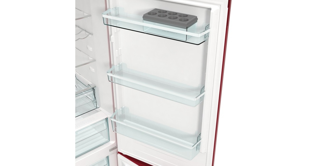 Der Kühl-/Gefrierkombination gorenje ONRK619DR ist mit einem Gesamtnutzinhalt von 300 Litern ideal für den mittelgroßen Haushalt geeignet und ist mit ihrem stilvollen Design einen echter Hingucker in der Küche. Der 204 Liter umfassende Kühlbereich verfügt über drei Glasabstellflächen, davon zwei höhenverstellbar, ein Flaschengitter, eine CrispZone mit Feuchteregler für Obst und Gemüse, eine Convert FreshZone, in der wahlweise Fisch und Fleisch oder Obst und Gemüse gelagert werden kann, sowie drei Türfächer. Im Gerät generierte Negativ-Ionen sorgen kontinuierlich für frische und sauerstoffhaltige Luft und das MultiFlow 360° Luftzirkulationssystem verteilt die ionisierte Luft über 14 Luftkanäle für eine gleichmäßige Temperatur im gesamten Kühlraum. Der Gefrierbereich der ONRK619DR umfasst 96 Liter und ist mit drei Gefrierschubladen, davon eine BigBox für größeres Gefriergut, ausgestattet. NoFrostPlus verhindert die Eisbildung im Gefrierraum, um den Energieverbrauch niedrig zu halten, während es im Kühlraum für ein ideales Mikroklima für frische Lebensmittel sorgt. Darüber hinaus bietet die ONRK619DR eine FastFreeze-Funktion für das schnelle Einfrieren frisch aufgefüllter Vorräte. Mit einem Stromverbrauch von 192 kWh im Jahr ist die ONRK619DR in die Energieeffizienzklasse D eingestuft.Art.-Nr.: 1808147