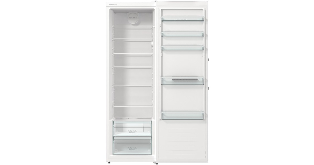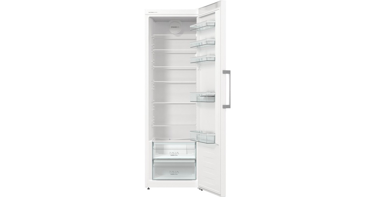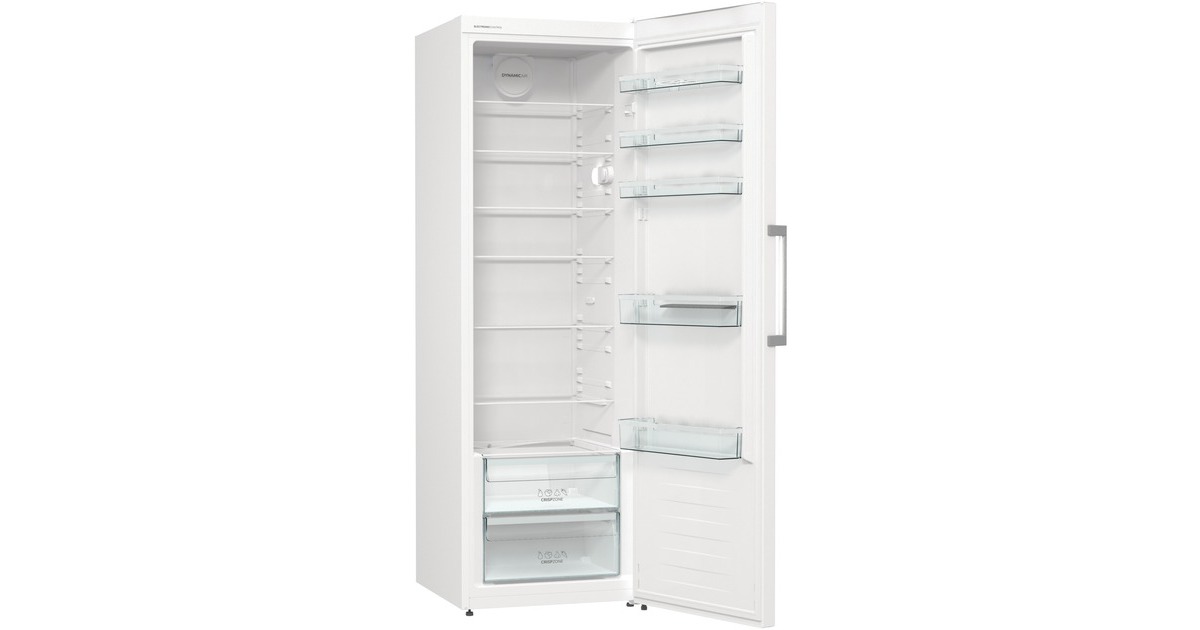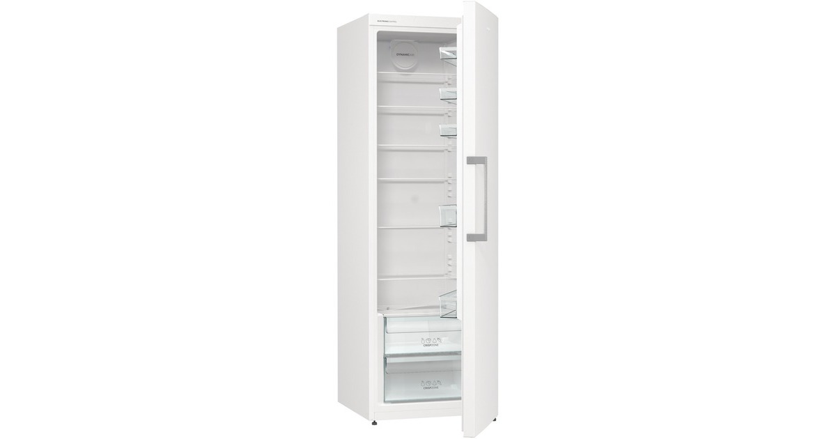 Der Vollraumkühlschrank gorenje R619EEW5 ist mit einem Gesamtnutzinhalt von 398 Litern ideal für den großen Haushalt geeignet. Ausgestattet ist er mit sieben Glasabstellflächen, zwei Obst-/Gemüseschubladen sowie fünf Türfächern. Wenn der Kühlschrank nach einem Großeinkauf befüllt wird, sorgt die SuperCool-Funktion für eine Reduktion der Temperatur um 3°C und schaltet sich nach 6 Stunden automatisch ab. Die LED-Innenbeleuchtung bietet ausgezeichnete und höchst effiziente Lichtverhältnisse für eine gute Sicht auf die Spiesen und mit dem EcoMode-Programm kann man sehr viel Energie sparen, wenn man für längere Zeit außer Haus ist. Dank des SlotIn-Systems kann der R619EEW5 direkt an eine Wand, neben eine Arbeitsfläche oder ein anderes Gerät gestellt werden, da sich die Kühlschranktür trotzdem bis zur vollen Gerätebreite öffnen lässt. Mit einem Stromverbrauch von 123 kWh im Jahr ist der R619EEW5 in die Energieeffizienzklasse E eingestuft.Art.-Nr.: 1868367