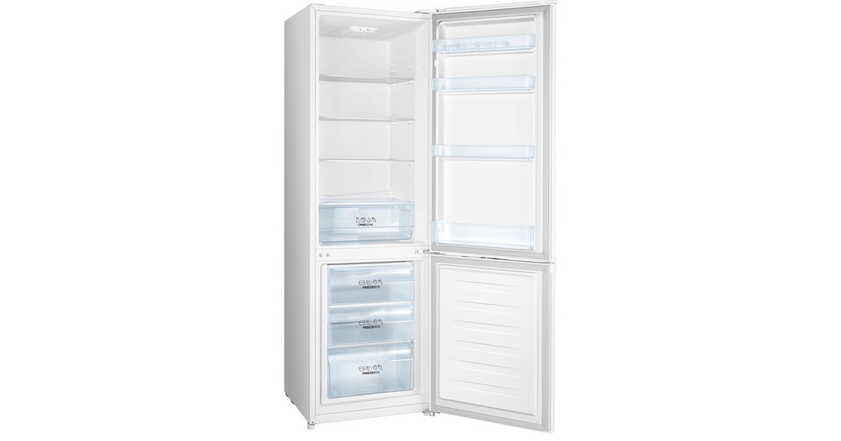 Die Kühl-/Gefrierkombination gorenje RK4182PW4 ist mit einem Gesamtnutzinhalt von 269 Litern ideal für den mittelgroßen Haushalt geeignet. Das 198 Liter umfassende Kühlteil stellt drei Glasabstellflächen, eine Obst-/Gemüseschublade sowie vier Türfächer für die übersichtliche Lagerung frischer Lebensmittel zur Verfügung. Die LED-Innenraumbeleuchtung sorgt dabei für eine gute Sicht auf die Speisen. Das Gefrierteil umfasst 71 Liter und ist mit drei Gefrierschubladen ausgestattet. Innerhalb von 24 Stunden können hier bis zu 3,2 Kilogramm Lebensmittel eingefroren werden. Die Temperaturregelung erfolgt mechanisch. Mit einem Stromverbrauch von 210 kWh im Jahr ist die RK4182PW4 in die Energieeffizienzklasse E eingestuft.Art.-Nr.: 1622021