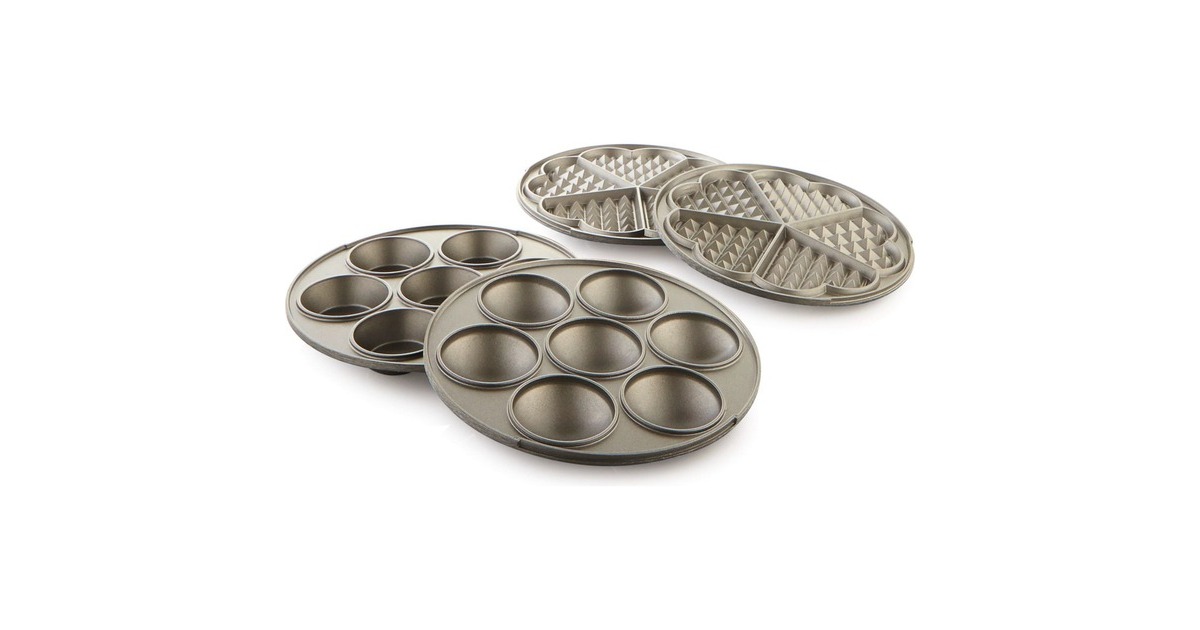 Bereitschaftsanzeige, automatische Temperaturregelung, Teigauffangrille, auswechselbare Platten |