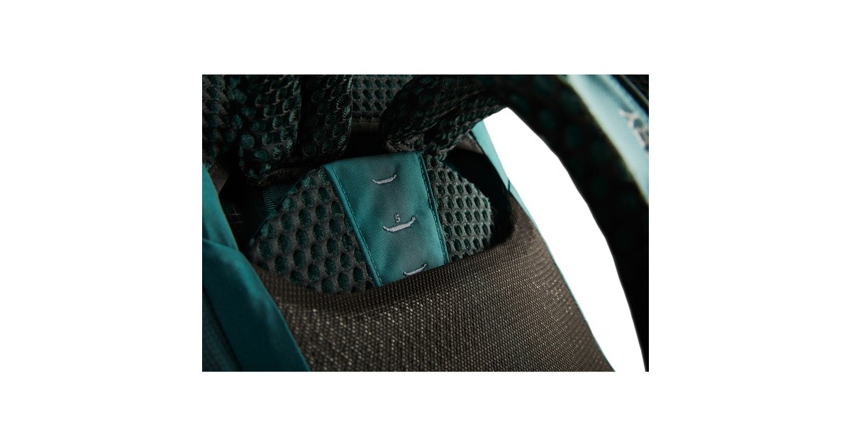Schultergurt mit automatischer Anpassung an die Schulterneigung, Rückenwand mit Luftkissen erhöht die Atmungsaktivität und reduziert Druckstellen, flexibler und verstellbarer Hüftgurt |