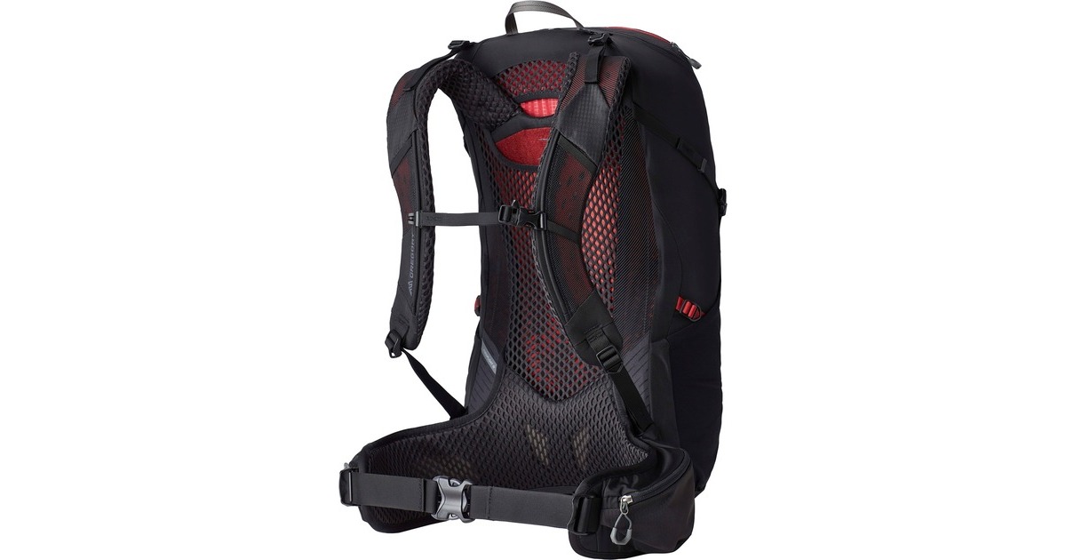 verstellbarer Hüftgurt, atmungsaktive Schultergurte |