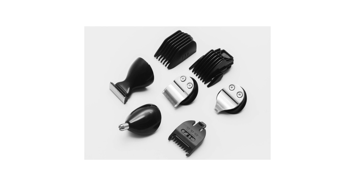 Bart-Trimmer, Detail-Trimmer, Multi Blade-Aufsatz, T-Klinge, Nasen-/ Ohrhaarschneider-Aufsatz, 3 Kammaufsätze, Ladestation |