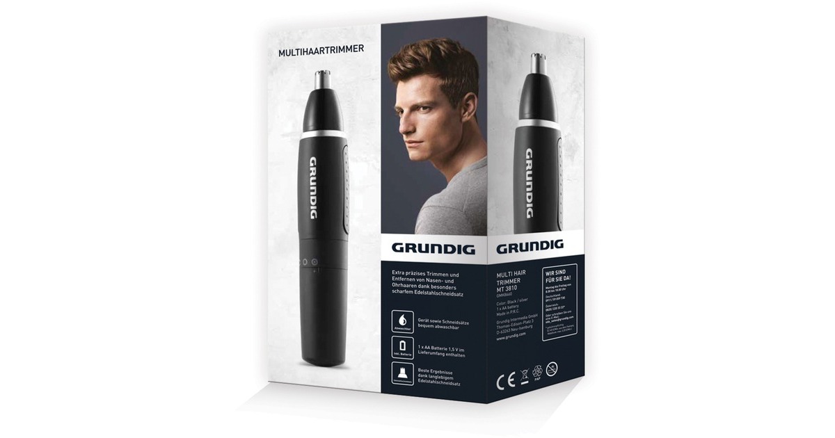 Mit dem MT 3810 Nasen- und Ohrhaartrimmer von Grundig ermöglicht extra präzises Trimmen von Augenbrauen, Bart sowie Nasen- und Ohrhaaren. Gerät sowie Edelstahlschneidsatz können einfach unter fließendem Wasser gereinigt werden. Betrieben wird der MT 3810 mit einer AA-Batterie.Art.-Nr.: 1475380