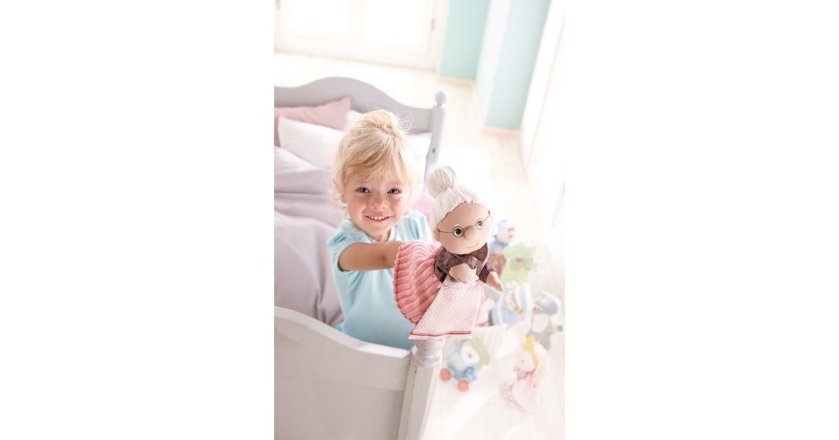 Die Großmutter ist die gute Seele in jedem Puppentheater und sie hat dem Kasper und seinen Freunden schon oft aus der Patsche geholfen. Diese Handpuppe sieht mit ihrem Dutt und der runden Brille im fein bestickten Gesicht aus, wie man sich eine gütige Oma eben vorstellt. Durch die aufwendig gearbeitete Bekleidung inklusive Schürze gewinnt man schnell den Eindruck, als würde die Großmutter jeden Moment den frisch gebackenen Apfelkuchen aus dem Ofen holen. Dank einer Größe von 27 cm und einem weichen Puppenkörper können sowohl Kinder, als auch Erwachsene ohne Mühe diese Handpuppe zum Leben erwecken.Art.-Nr.: 1362124