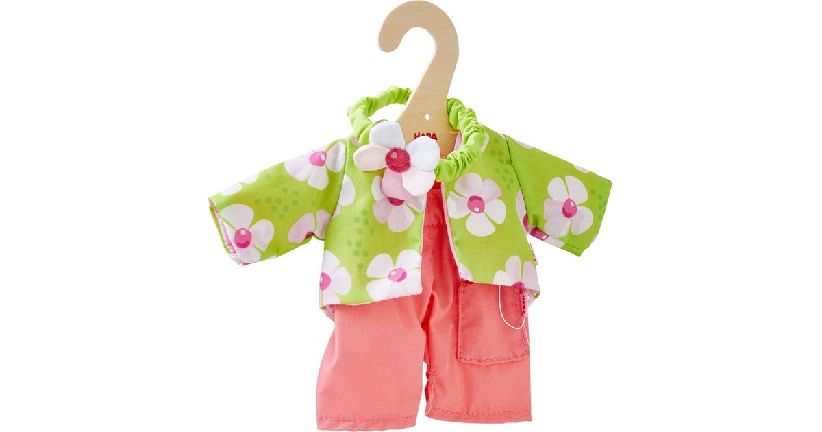 Dieses Kleiderset passt perfekt zu den HABA-Stoffpuppen mit einer Größe von 30 cm. Mit ihm zieht der Frühling auch im Puppen-Kleiderschrank ein. Es enthält eine geblümte Jacke und eine rosafarbene Hose. Ein Haarband mit dekorativer Blumen-Applikation gibt dem Outfit den letzten Schliff. Alle Teile sind bei 30° waschbar.Art.-Nr.: 1912746