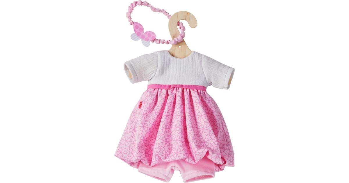 Auch HABA Puppen träumen von wunderschönen neuen Kleidern. Mit dem Kleiderset Traumkleid von HABA können Puppeneltern diesen Traum nun Wirklichkeit werden lassen und ihre Puppen mit einem wunderschönen Kleid, einem modischen Haarband und einem Slip einkleiden. Das HABA Kleiderset Traumkleid passt perfekt zu allen 32 cm großen HABA Puppen. Wird es mal schmutzig, lässt es sich in der Waschmaschine bei 30°C waschen. Schnell ist es wieder an der Puppe angezogen und lädt so zu neuen kreativen Rollenspielen ein. Das hübsche HABA Kleiderset Traumkleid lässt die Herzen von Puppeneltern ab 18 Monaten höher schlagen.Art.-Nr.: 1678796