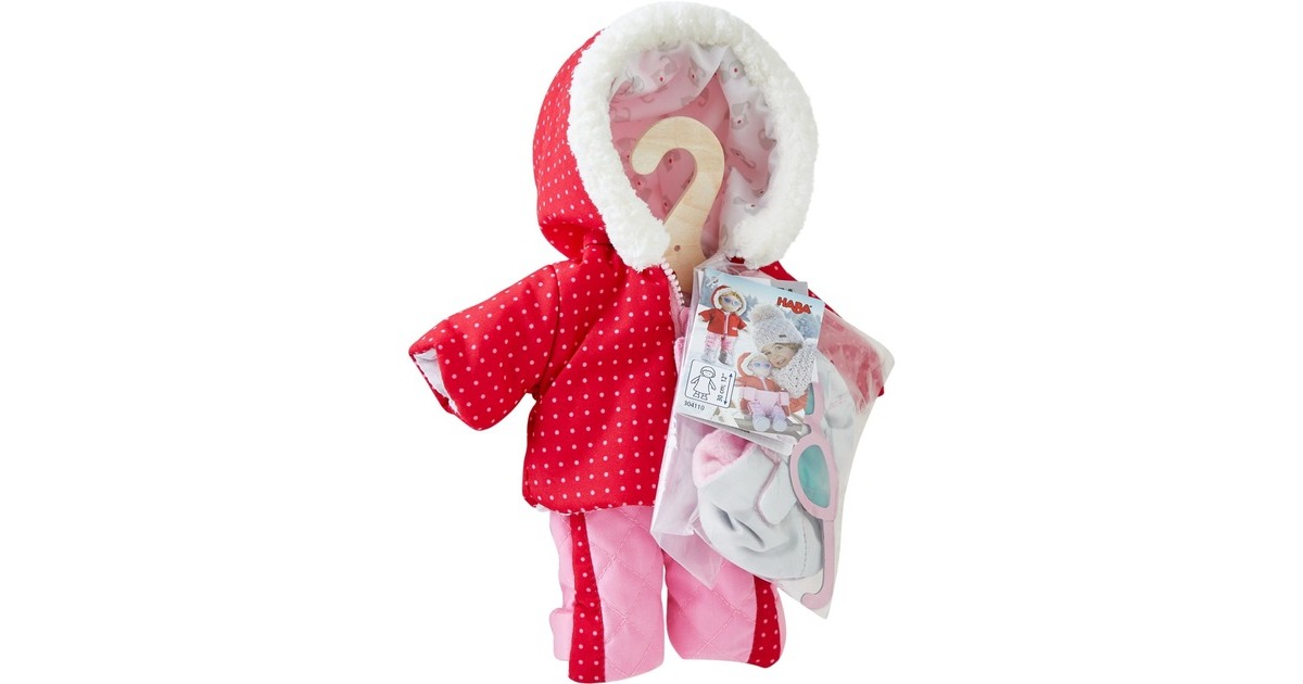 Dieses Kleiderset passt perfekt zu den HABA-Stoffpuppen mit einer Größe von 30 cm. Mit dem süßen Kleiderset Winterspaß sind kleine Schneehasen bereit für die Berge. Das winterliche Mini-Outfit in Rosa und Rot mit Anorak, Schneehose und Stiefelchen ist farblich perfekt abgestimmt und hält angenehm warm. Dank praktischem Reißverschluss kann die Jacke je nach Wetterlage ruckzuck an- und ausgezogen werden. Für ein stylishes Extra auf der Piste sorgt die niedliche Sonnenbrille. So kann der Winter kommen! Alle Teile sind bei 30° waschbar.Art.-Nr.: 1912757