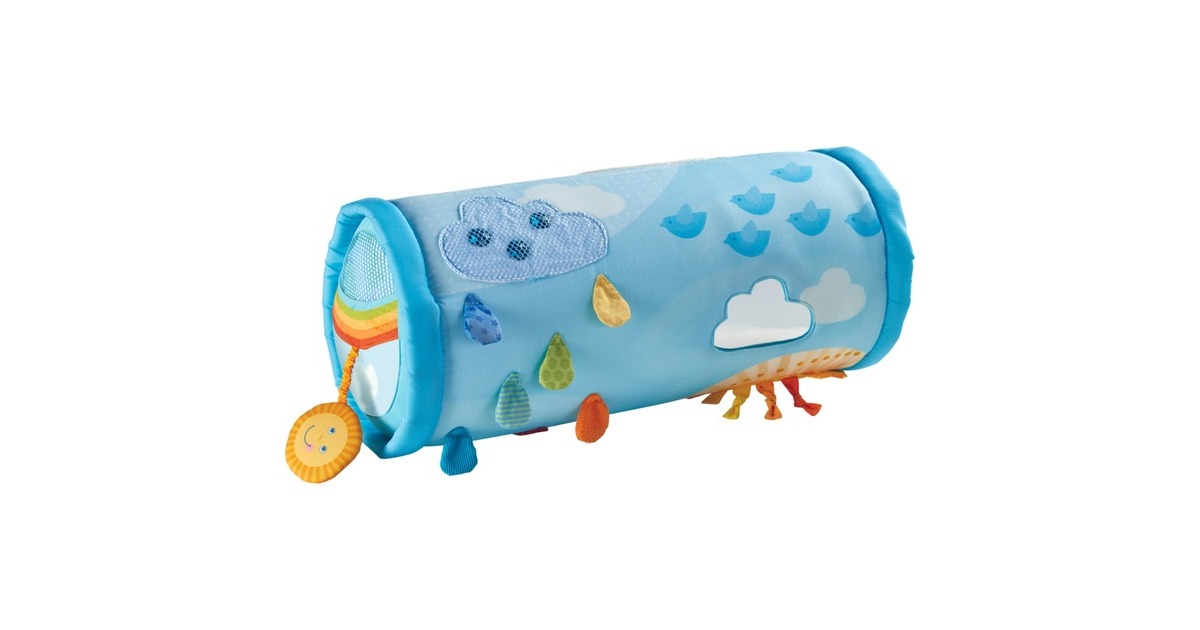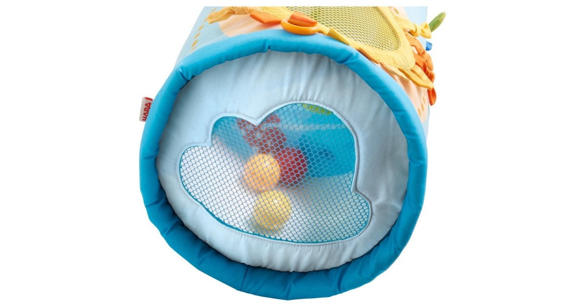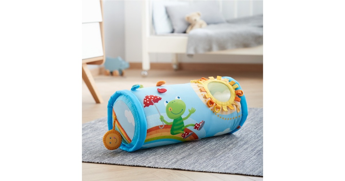 Rollen, krabbeln und sehr viel entdecken können alle Babys mit dieser luftgefüllten Krabbelrolle. Denn sie kann nicht nur weggerollt werden und animiert zum Nachkrabbeln - es gibt auch noch viel zu entdecken. Auf ihr befinden sich viele Knister- und Fühlelemente - besonders spannend: Eine große Spiegelfolie, in der sich Babies selber betrachten können. Die Entdecker-Elemente fördern die Sinnes-Entwicklung der Kinder und machen die Krabbelrolle zu einem spannenden Spielzeug.Art.-Nr.: 1731637