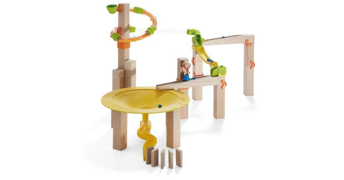 Diese Grundpackung aus der Kugelbahn-Serie von HABA lädt zum Experimentieren mit Geschwindigkeit, Kraft und Höhe ein. Sie bietet hohe Variabiiltät und eine Vielzahl von tollen Elementen wie die Funnelkurven, die Speedröhren oder die Powerpulser-Bahn, in der ankommende Murmeln den Impuls an liegende Murmeln weitergeben. Im Big Speedcircle rasen die Murmeln im Kreis: erst langsam, dann immer schneller. Diese Kugelbahn bietet Kindern ab 4 Jahren langanhaltendes Spielvergnügen.Art.-Nr.: 1446255