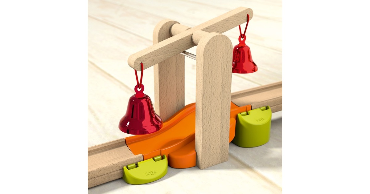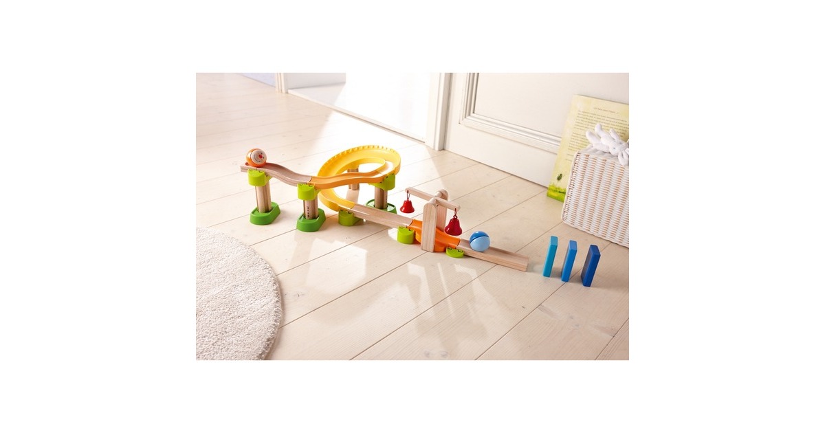 Klingeling! – bei der gleichnamigen Kugelbahn aus der Kullerbü-Serie von HABA kommt Kugel Paul angeflitzt und bringt gleich zwei Glöckchen zum Klingeln. Doch zuvor geht es für ihn erst einmal durch eine rasante Kugel-Steilkurve, in der er ordentlich Schwung holt. Anschließend saust Kugel Paul hinab auf eine Gerade und über die Glöckchen-Wippe, um im Zieleinlauf mit Karacho mehrere Dominosteine zu Fall zu bringen. Das macht riesengroßen Spaß – und deshalb geht es auch gleich auf zu einer neuen Runde Kullervergnügen mit Kugel Paul.Art.-Nr.: 1361630