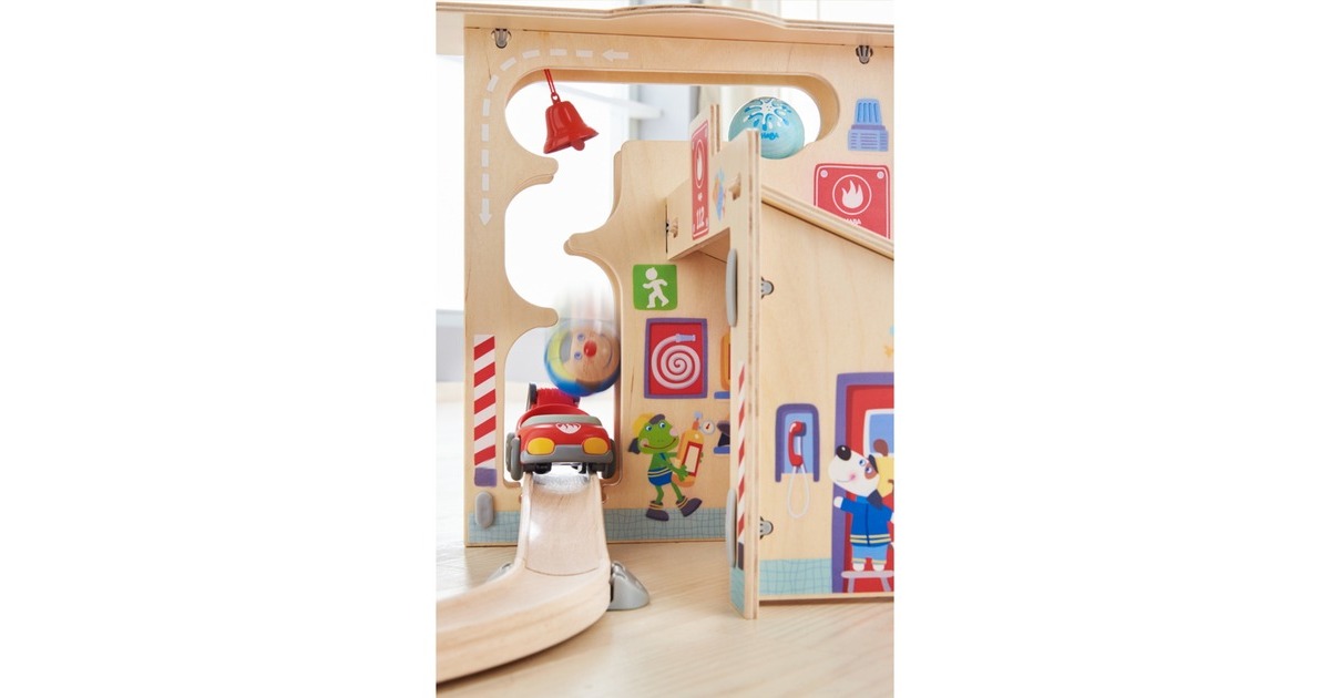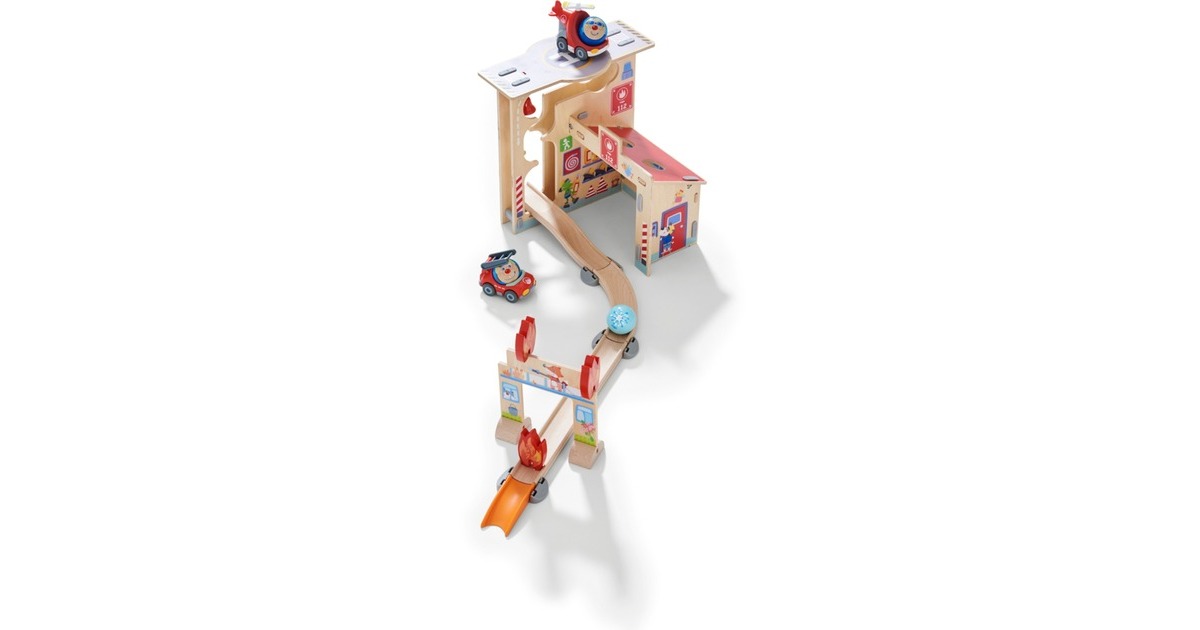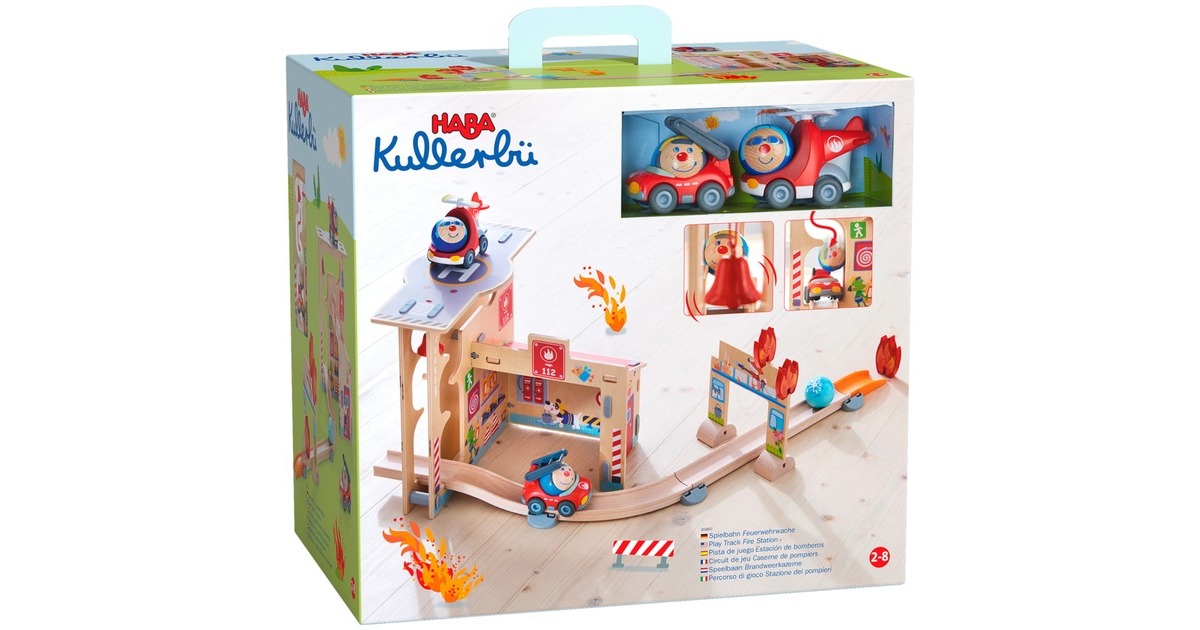 Die Spielbahn Feuerwehrwache bringt viel Spiel- und Fahrspaß für kleine Feuerwehrfreunde! Diese tolle Kugelbahn aus der Kullerbü-Serie von HABA bietet viele Spieleffekte: Mit dabei sind ein Hubschrauberlandeplatz, eine Kugel-Rutsche und eine Fahrzeughalle für bis zu drei Feuerwehrautos. Dabei lassen sich die Teile frei kombinieren, wobei diese Bahn auch mit anderen Spielbahnen der Serie Kullerbü kombinierbar ist. Dank cleverem Klicksystem bleibt die Bahn sicher stehen und ist auch für die Kleinen einfach aufzubauen.Art.-Nr.: 1526725