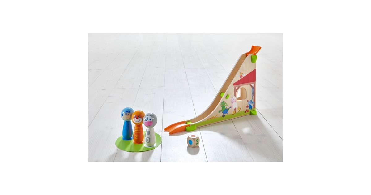 Die Kullerbü Kugelbahn Kegelfarm bietet ein tierisch lustiges Kullervergnügen in Form eines Kegelspiels. Das Spiel ist nach einfachen Regeln oder frei spielbar. Eine Klangkugel bringt noch mehr Musik ins Kullerbü-Spiel. Eine tolle Geschenkidee zum Geburtstag. Art.-Nr.: 1616114