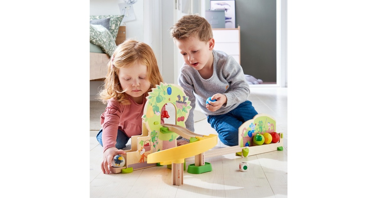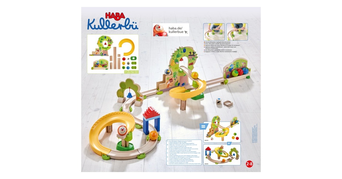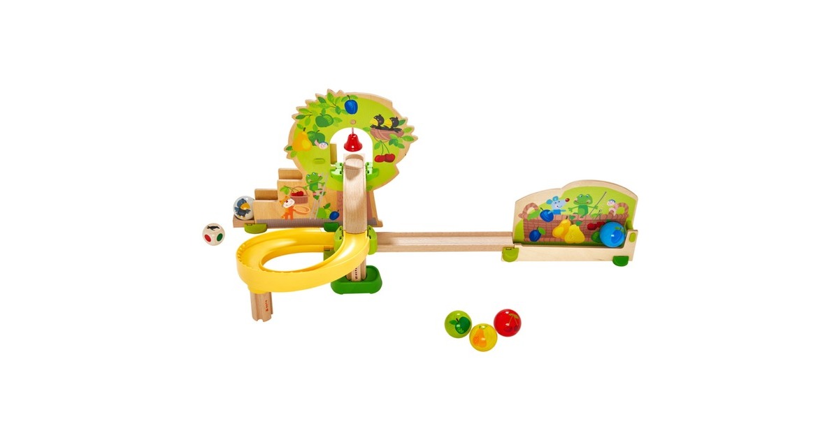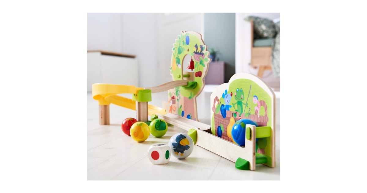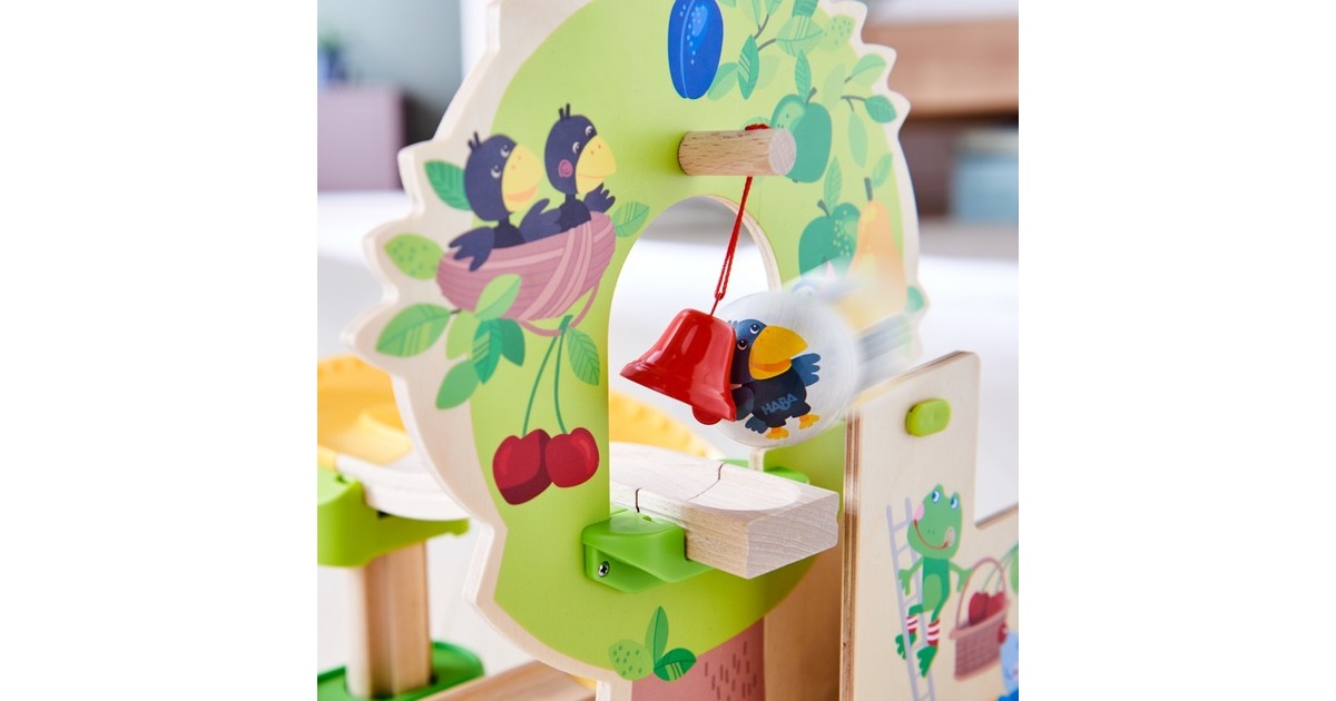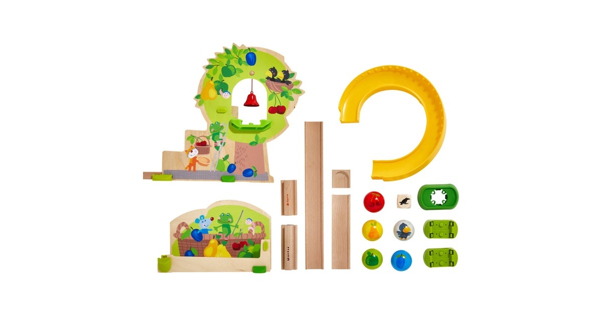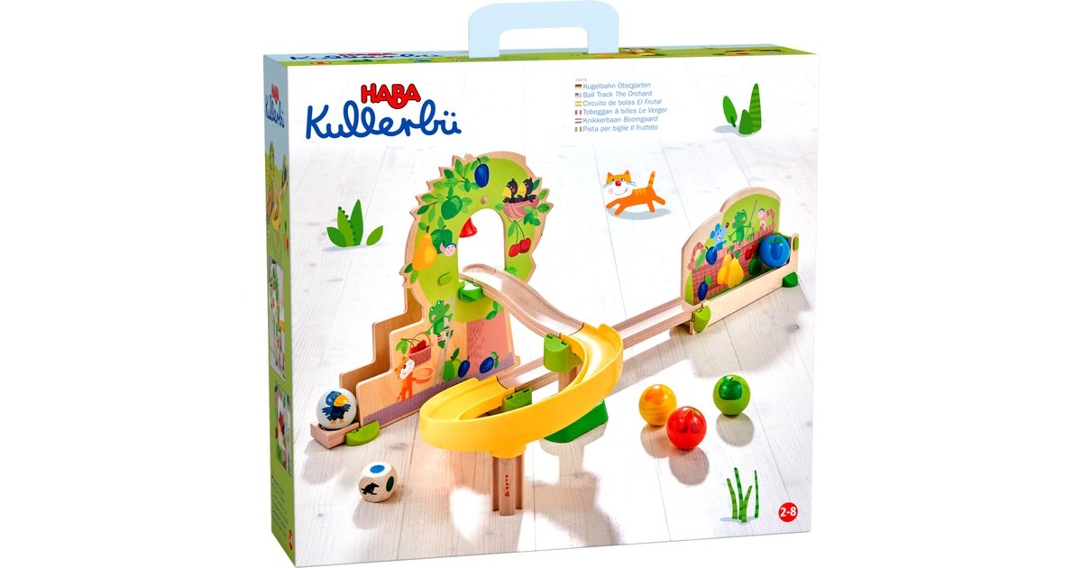 Der HABA-Klassiker Obstgarten kommt nun auch in die Welt der Kullerbü-Kugelbahnen. Die Kugelbahn Obstgarten lehnt sich an die aus dem Spiel bekannten Motive an - mit Früchte-Kugeln, dem diebischen Raben und ganz viel Kugelbahn-Spaß. Mit dem bewährten Klicksystem ist diese Kugelbahn schnell aufgebaut. Ein Glöckchen im Obstbaum signalisiert den Start beim Kullerspaß.Art.-Nr.: 1731344