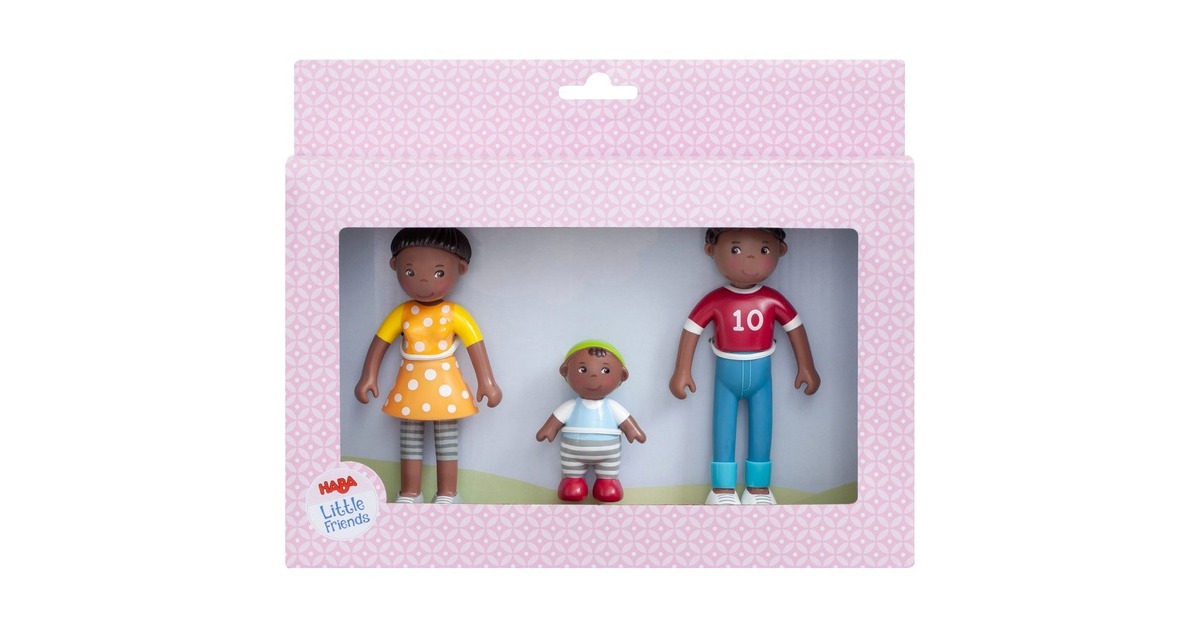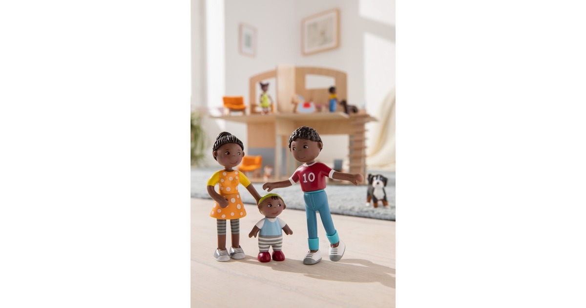 Mama Sophia und Papa Benjamin aus der HABA-Serie Little Friends freuen sich: Baby Lucas macht ihr Familienglück perfekt. Die kleine Familie eignet sich für fantasievolle Rollenspiele. Mit diesem Spielset können Kinder ihren eigenen Alltag nachspielen und sich neue Geschichten ausdenken. Das Spielen mit den lebensnah gestalteten Minipuppen fördert die emotionale Entwicklung und soziale Fähigkeiten. Die Biegefiguren aus strapazierfähigem Kunststoff sorgen lange für großen Spielspaß.Art.-Nr.: 1913085