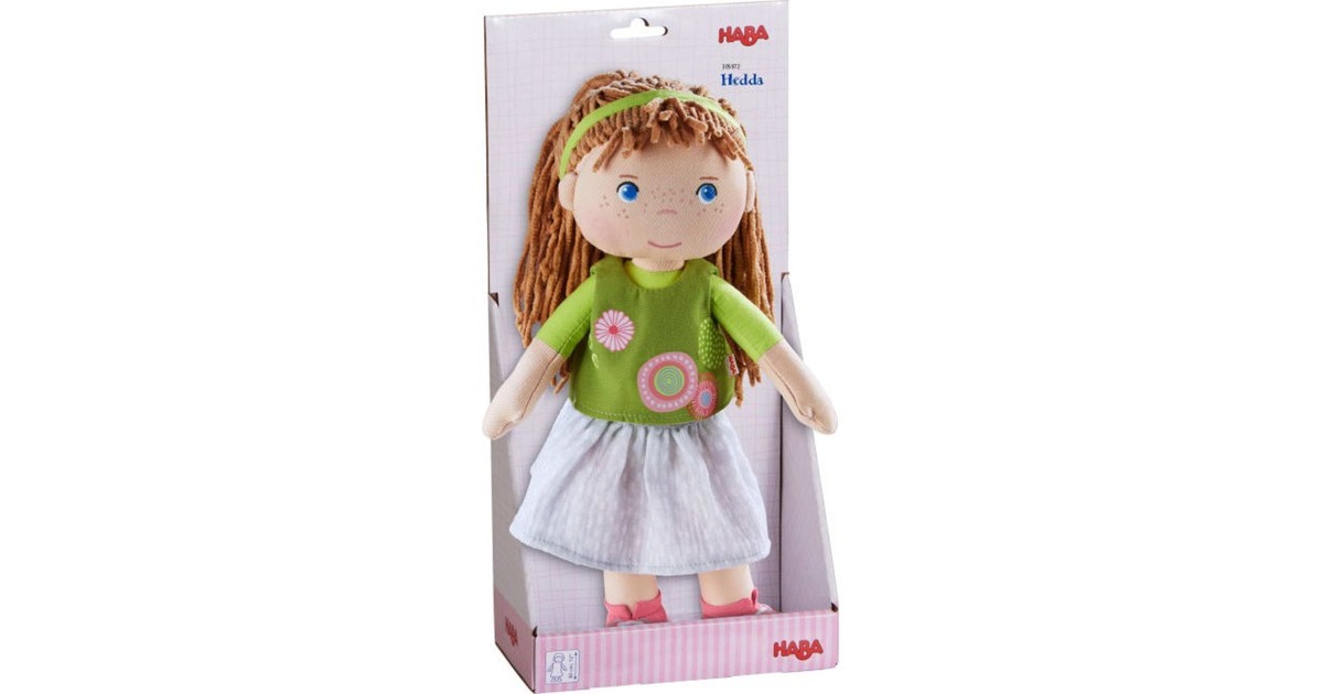 Puppen von HABA sind tolle Gefährten für Kinder. Sie haben fröhliche Gesichter, weiche, wattierte Körper und kuschelige Haare. Spielen, kuscheln, trösten oder Abenteuer erleben – mit diesen Puppen ist vieles möglich. Bei der großen Auswahl an Charakteren ist für jedes Kind der passende Spielgefährte dabei. Hedda liebt lange Spaziergänge und ein Picknick im Sommer. Mit ihrem grünen Shirt und dem weiten Rock ist sie bestens dafür ausgestattet. Praktisch: Ihre Kleidung ist dank Klettverschluss ruckzuck aus- und ebenso schnell wieder angezogen.Art.-Nr.: 1913231