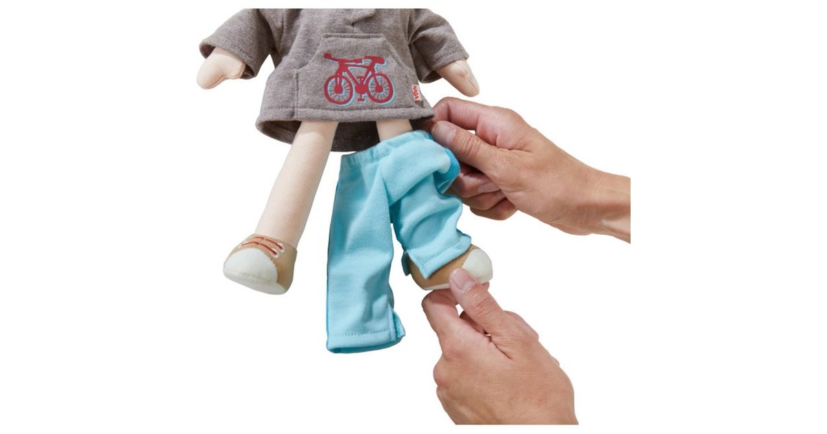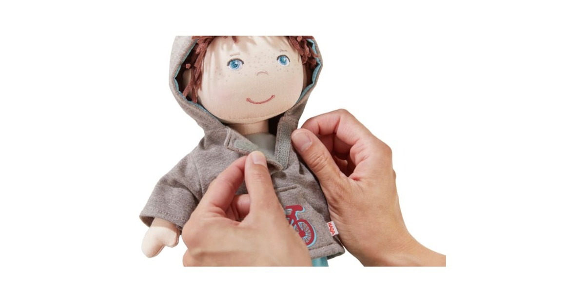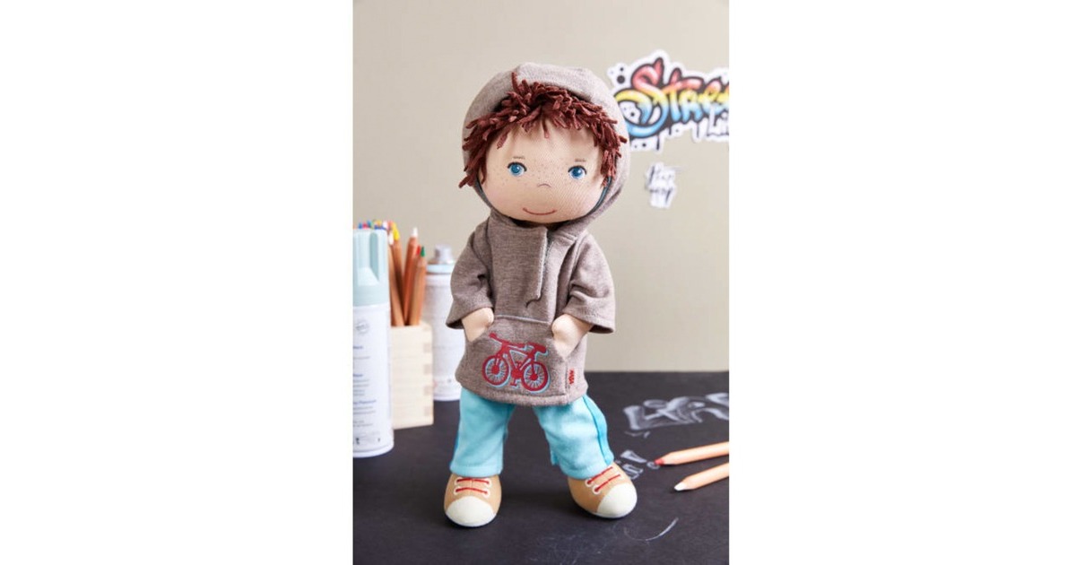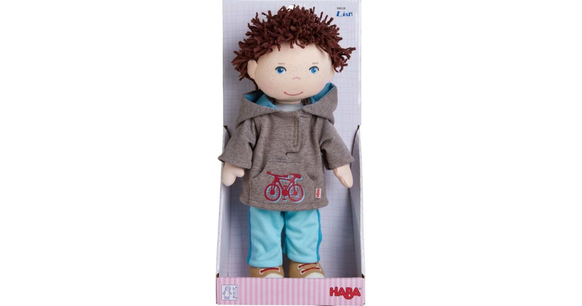 Puppen von HABA sind tolle Gefährten für Kinder. Sie haben fröhliche Gesichter, weiche, wattierte Körper und kuschelige Haare. Spielen, kuscheln, trösten oder Abenteuer erleben – mit diesen Puppen ist vieles möglich. Bei der großen Auswahl an Charakteren ist für jedes Kind der passende Spielgefährte dabei. Lian kommt mit den coolen Turnschuhen und seinem lässigen Kapuzenpulli immer gut an. Praktisch: Seine Kleidung ist dank Klettverschluss ruckzuck aus- und ebenso schnell wieder angezogen.Art.-Nr.: 1913233