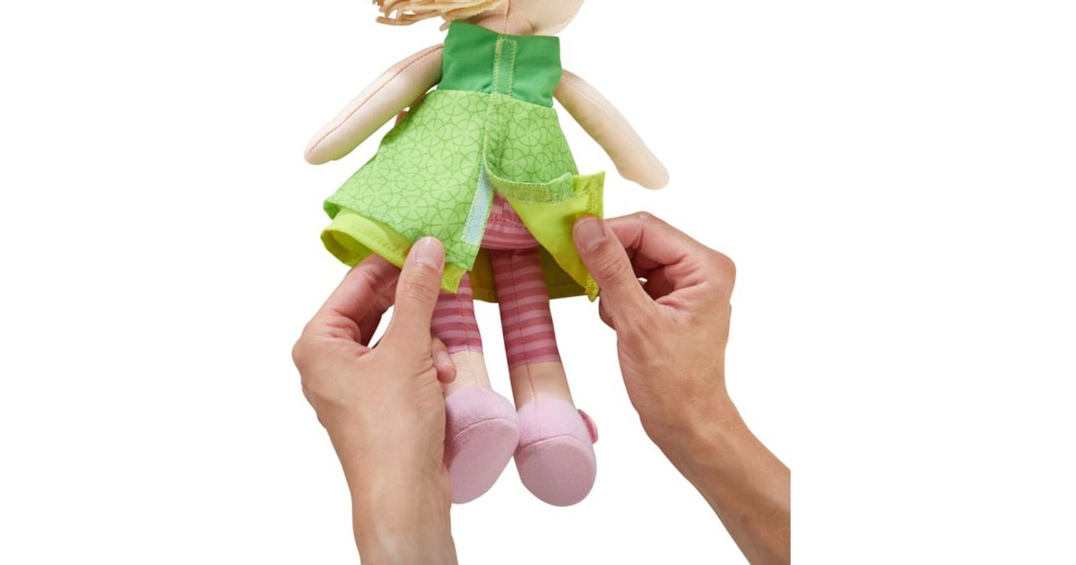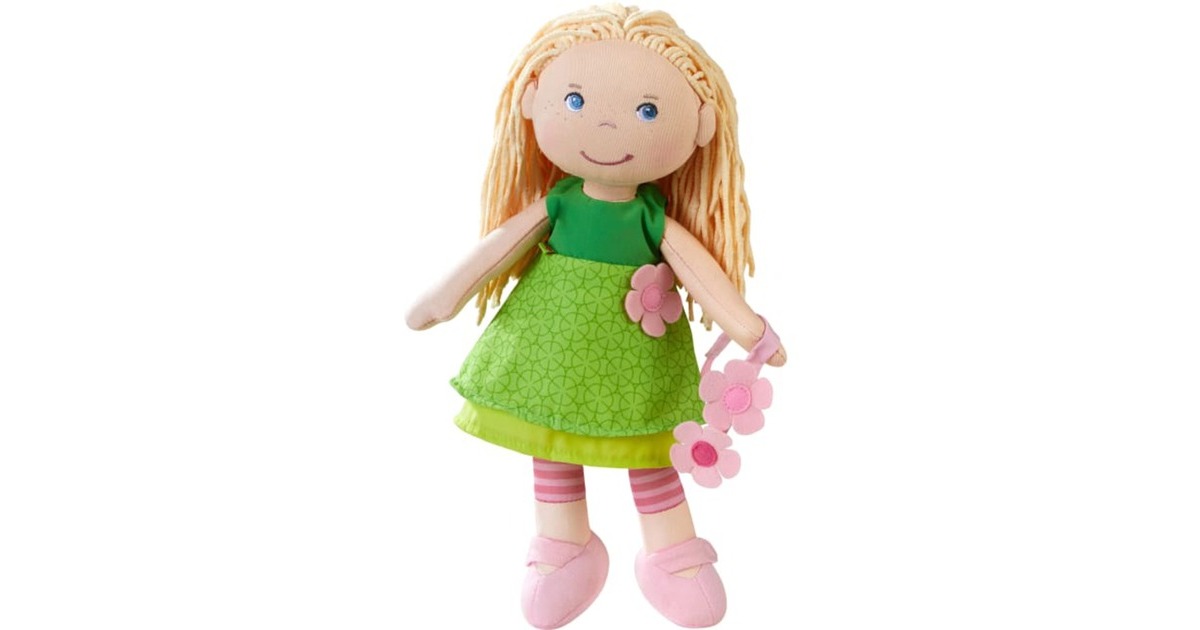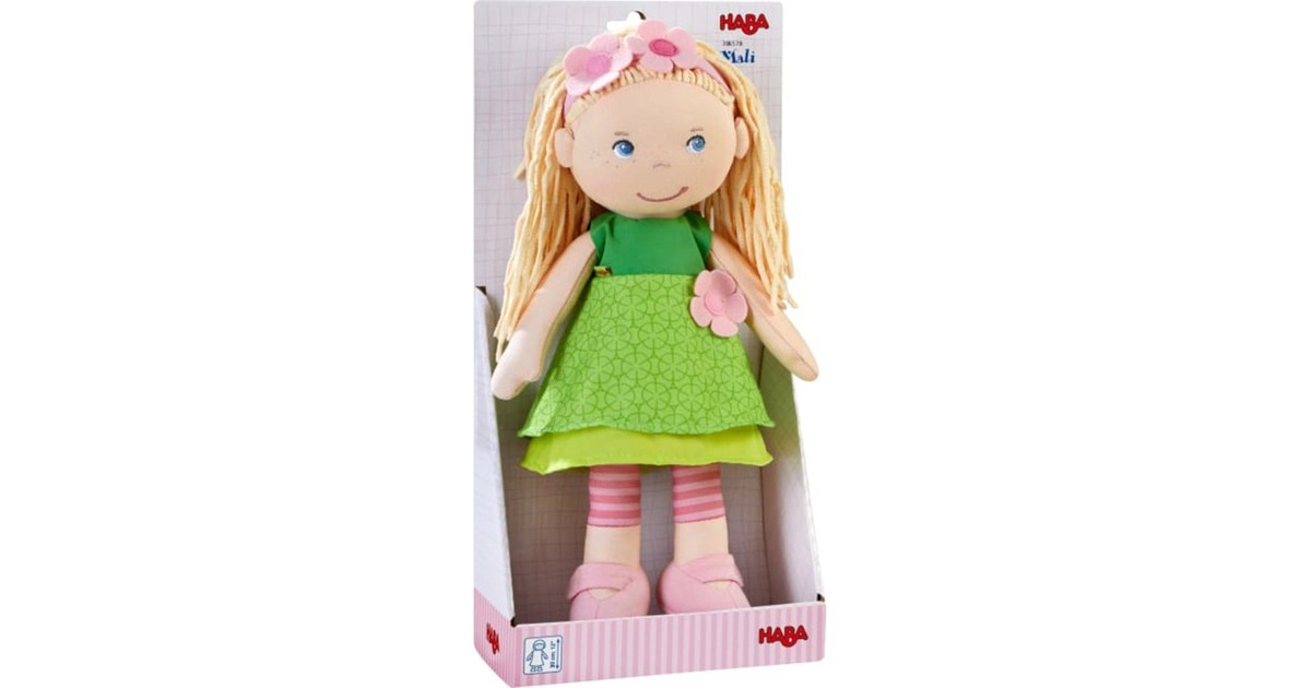 Puppen von HABA sind tolle Gefährten für Kinder. Sie haben fröhliche Gesichter, weiche, wattierte Körper und kuschelige Haare. Spielen, kuscheln, trösten oder Abenteuer erleben – mit diesen Puppen ist vieles möglich. Bei der großen Auswahl an Charakteren ist für jedes Kind der passende Spielgefährte dabei. Mali trägt ein süßes grünes Kleid und rosa Blümchen in ihrem blonden Haar. Praktisch: Ihre Kleidung ist dank Klettverschluss ruckzuck aus- und ebenso schnell wieder angezogen.Art.-Nr.: 1913234