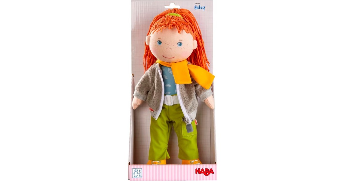 Puppen von HABA sind tolle Gefährten für Kinder. Sie haben fröhliche Gesichter, weiche, wattierte Körper und kuschelige Haare. Spielen, kuscheln, trösten oder Abenteuer erleben – mit diesen Puppen ist vieles möglich. Bei der großen Auswahl an Charakteren ist für jedes Kind der passende Spielgefährte dabei. Soley will vor allem eins: Draußen sein - egal ob auf dem Fußballplatz oder beim Klettern: Sie will immer etwas spannendes erleben. Praktisch: Ihre Kleidung kann beliebig aus und wieder angezogen werden.Art.-Nr.: 1913235