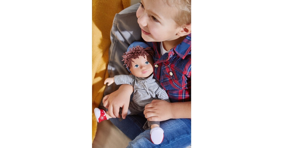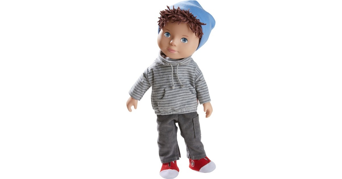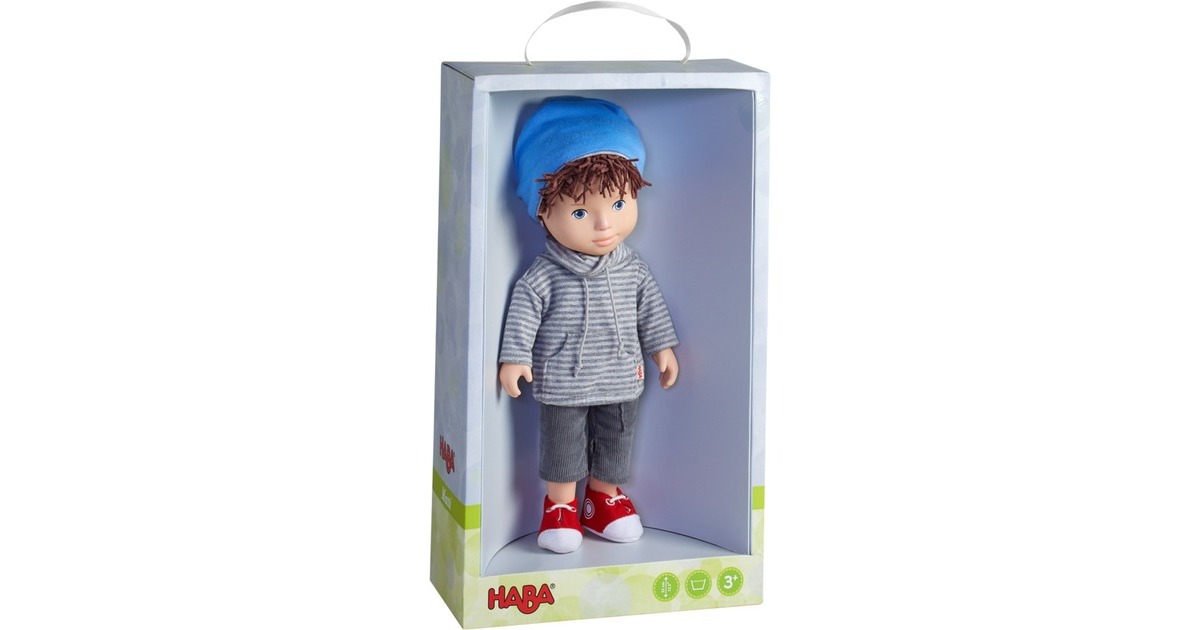 Die Spielpuppe Matti von HABA ist besonders cool und verbreitet überall gute Laune. Er begleitet Kinder in einer neuen Lebensphase, in der Rollenspiele, Kommunikation sowie die Entwicklung von sozialen Kompetenzen immer wichtiger werden. Darüber hinaus trägt Matti moderne, zeitlose Kleidung und begeistert junge Puppeneltern durch seine natürliche, lebensnahe Gestaltung, denn sein Körper ist den Proportionen eines Kindes nachempfunden. So können sich Kinder ganz besonders leicht in dieser HABA Spielpuppe wiederfinden. Der Körper der Puppe ist auch schön weich, während Kopf und Gliedmaßen aus Vinyl bestehen. Puppenmamas und -papas ab 3 Jahren lassen bei den Rollenspielen mit Matti ihrer Fantasie und Kreativität gerne freien Lauf.Art.-Nr.: 1678779