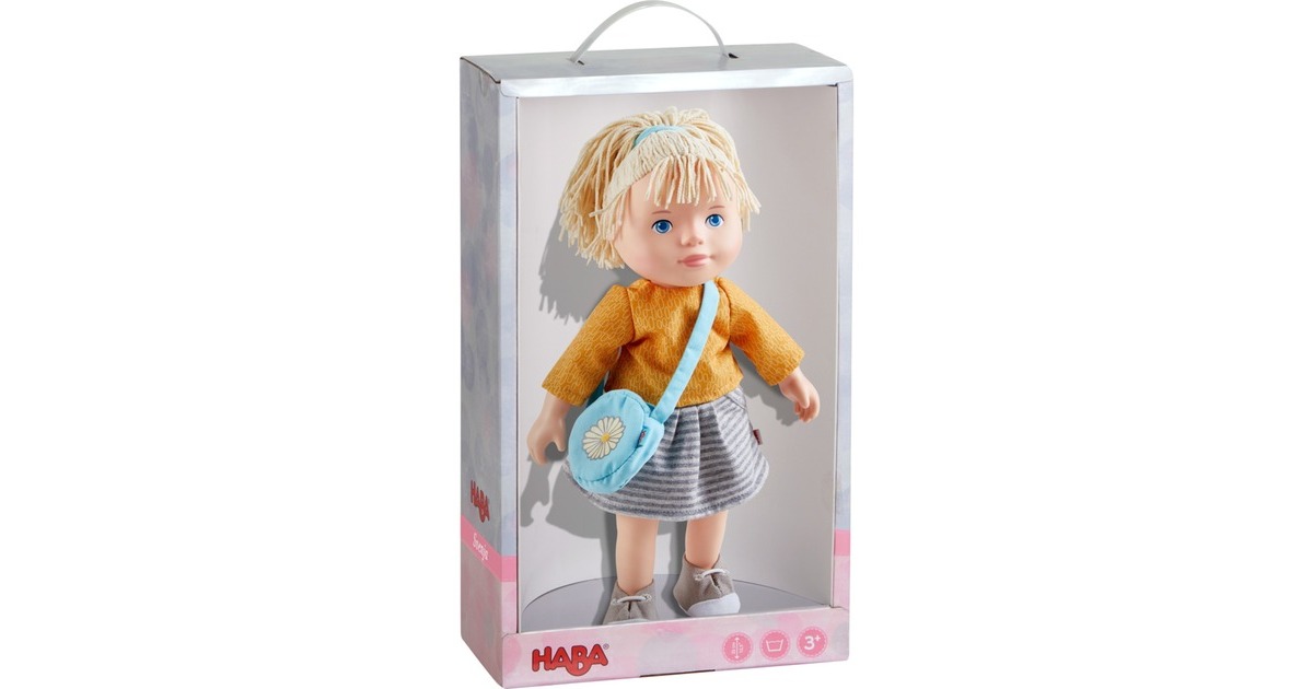 Die HABA Puppe Svenja ist immer fröhlich und möchte am liebsten rund um die Uhr spielen. Ihre Lieblingskleidung besteht aus einem sonnengelben Langarm-Shirt und einem geringelten Rock. Ihre blonden Haare trägt sie zu einem Zopf zusammengebunden. Svenja begleitet Kinder in einer neuen Lebensphase, in der Rollenspiele, Kommunikation sowie die Entwicklung von sozialen Kompetenzen immer wichtiger werden. Die HABA Puppe erobert mit ihrer natürlichen, lebensnahen Gestaltung die Herzen von Puppeneltern im Sturm, denn ihr Körper ist den Proportionen eines Kindes nachempfunden. So können sich Kinder leicht in Svenja wiederfinden und beim Spielen ihrer Fantasie und Kreativität freien Lauf lassen.Art.-Nr.: 1731231