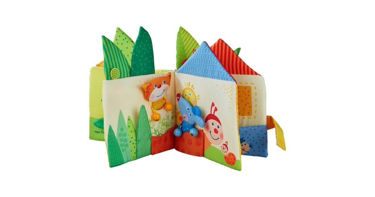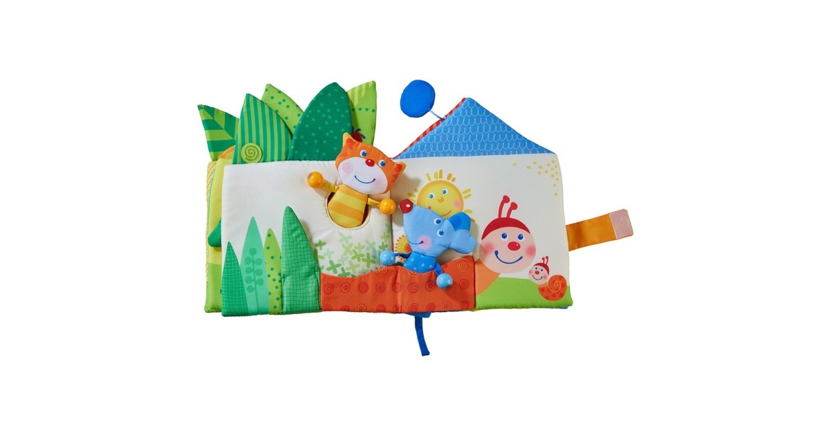 Im Stoffbuch Blätterhäuschen gibt es auf 10 Seiten ganz viel zu entdecken: Die Figuren Katze und Maus suchen nach ihrem Traumhäuschen und treffen dabei weitere Figuren wie den Frosch und Schni-Schna-Schneck. Dabei sind außerdem viele faszinierende Elemente zum Fühlen und Spielen enthalten. Lustige Reime machen die Geschichte unterhaltsam. Art.-Nr.: 1731602