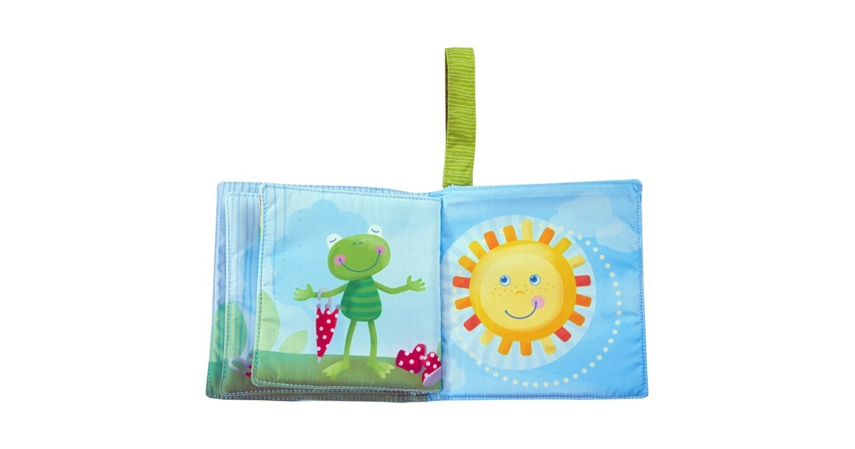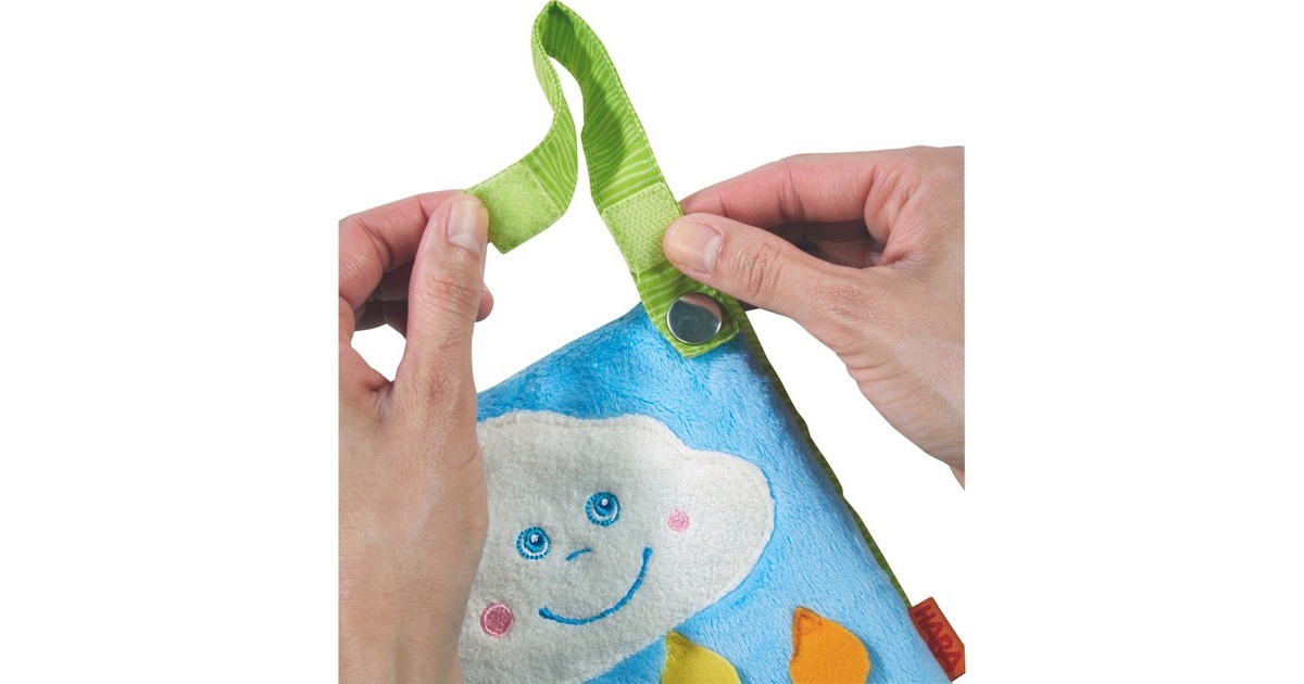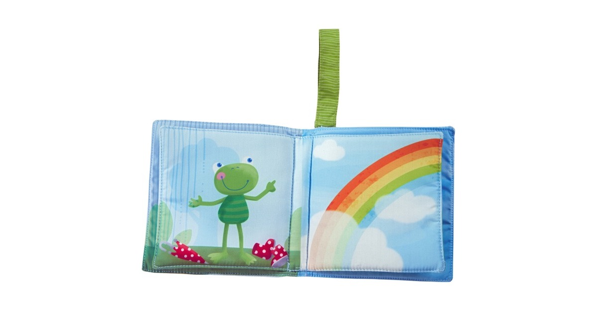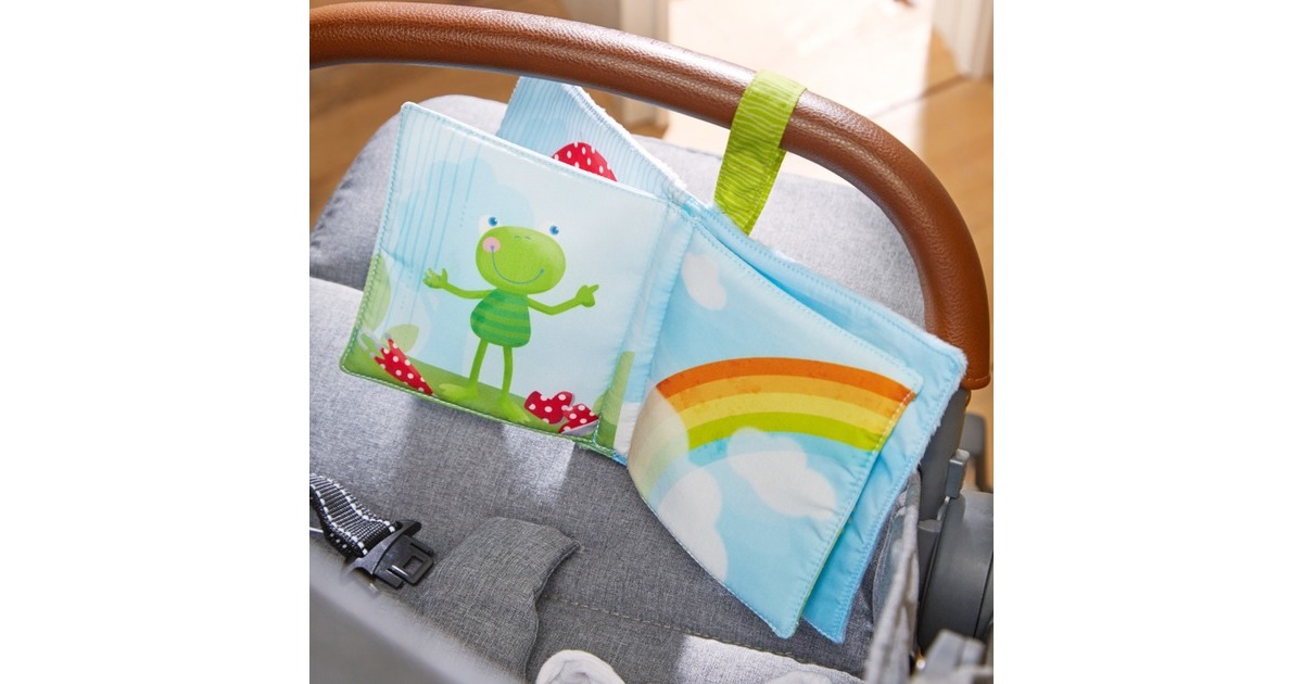 In diesem Buch für Kinder ab sechs Monaten strahlen Sonne und Regenbogen um die Wette! Und es gibt auf jeder Seite etwas zu entdecken: Eine Wolke mit Knisterfolie und eine quietschende Sonne - sorgen für Anregung für kleine Kinderhände. Mit seiner Klettschlaufe kann das Buch ganz leicht am Kinderwagen oder der Babyschale befestigt werden. Art.-Nr.: 1731580
