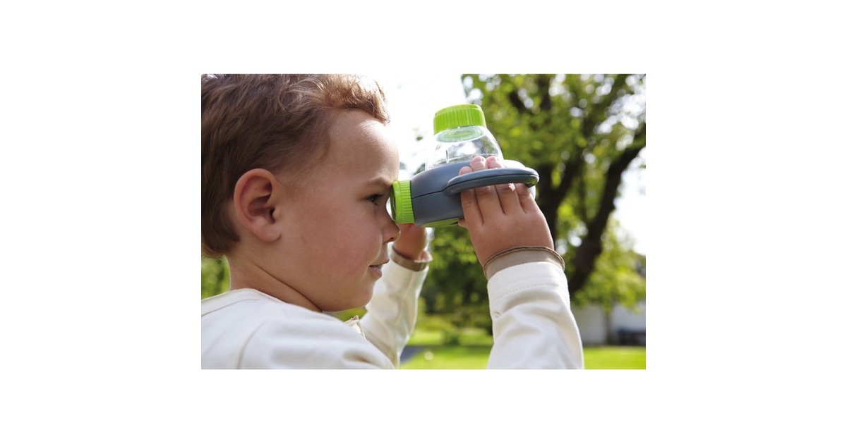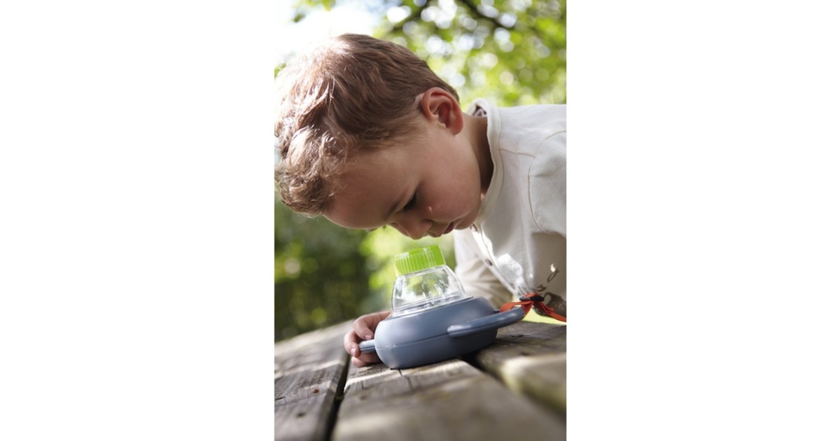 Zu einer ordentlichen Naturforscher-Ausrüstung gehört eine gute Lupe – da kommt die Terra Kids Beobachtungslupe von HABA gerade recht. Mit ihrem raffinierten Spiegelmechanismus lassen sich kleine Objekte sowohl von oben als auch von unten betrachten. Groß und detailreich erscheinen die Forschungs-Objekte, da sie in der oberen Öffnung 6-fach und in der unteren 4-fach vergrößert werden. Mit einer Kunststoff-Schlaufe und einem coolen Aluminium-Karabiner wird die Beobachtungslupe (L 19 cm, B 13 cm, H 10 cm) ganz einfach am Rucksack oder Gürtel befestigt. So ist sie immer schnell griffbereit. Die Terra Kids Beobachtungslupe von HABA wird mit einer kleinen, ungefährlichen Kunststoff-Spinne geliefert.Art.-Nr.: 1362434