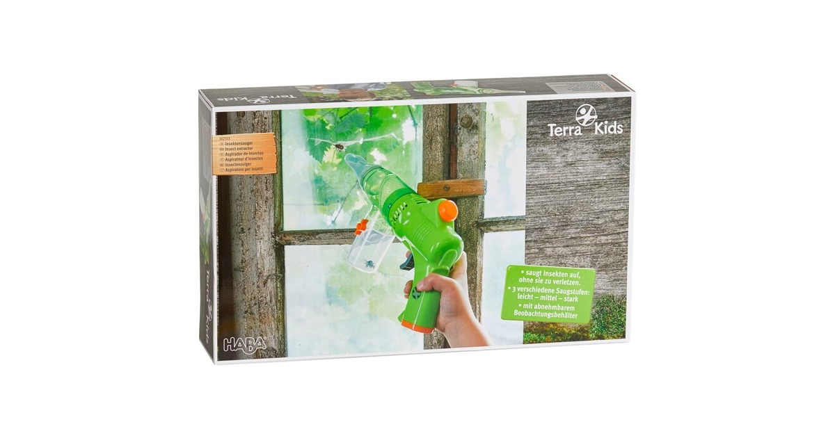 Der Terra Kids Insektensauger von HABA macht detaillierte Beobachtungen von kleinen Tieren möglich: Ob Fliegen, Spinnen oder Ameisen – mit dem Terra Kids Insektensauger lassen sie sich sanft einsaugen. Das ist ganz einfach und gleichzeitig schonend für die Tiere. Damit diese nicht sofort wieder ausbüxen, wird der Auffangbehälter mit einer Drehklappe verschlossen. Nun können Kinder ihre kleinen Forschungsobjekte vorsichtig und ganz in Ruhe in Augenschein nehmen, um sie anschließend wieder freizulassen. Der Sauger hat 3 Saugstufen und funktioniert mit Batterie (4 x 1,5-V-AA Lieferung ohne Batterien). Der Terra Kids Insektensauger ist ein außergewöhnliches Geschenk für kleine Naturforscher.Art.-Nr.: 1913166