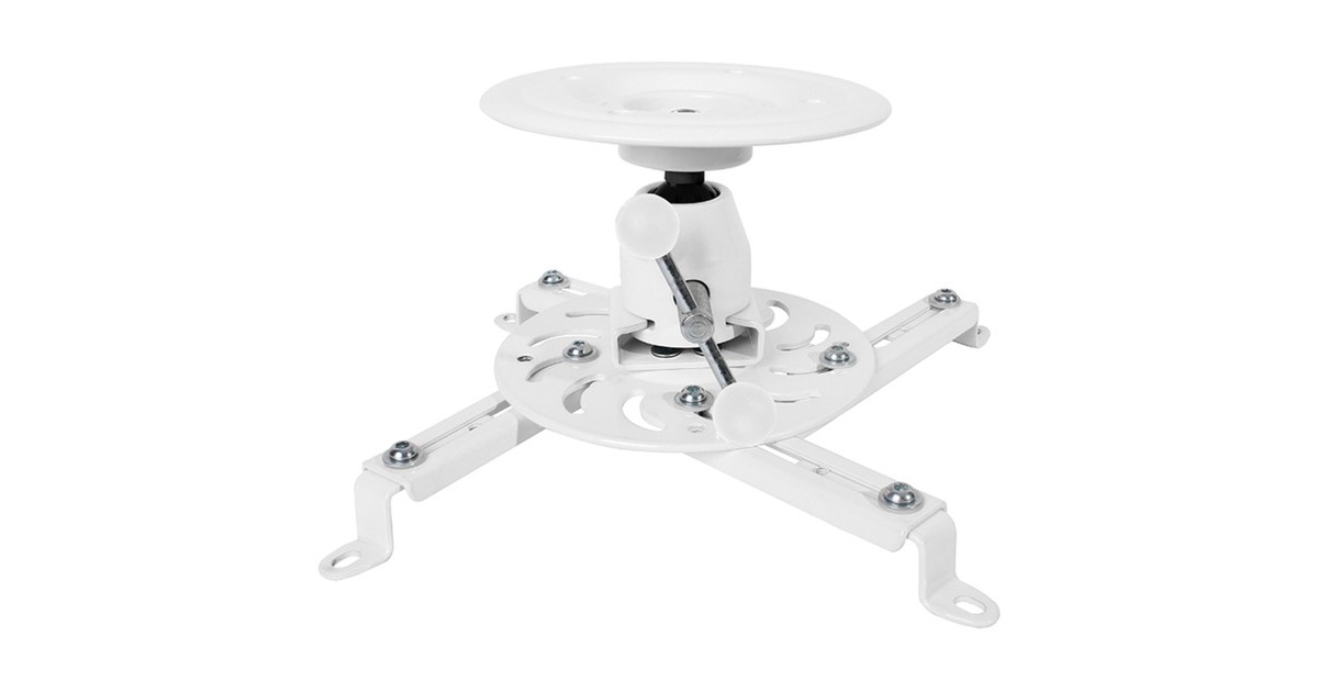 Der Beamfix II ist eine universelle Lösung um fast alle handelsüblichen Beamer an der Decke zu montieren. Der Deckenmontageteller bietet stabilen Halt um die Beamer-Halterung sicher und langfristig in Position halten. Die maximale Traglast beträgt 10 kg. Durch die flexibel einstellbaren Montagearme erreicht man jeden Befestigungspunkt an den zu verbauenden Gerät. Die Montagearme können zwischen Ø min. 80 und max. Ø 500 mm variiert werden.Art.-Nr.: 1770117