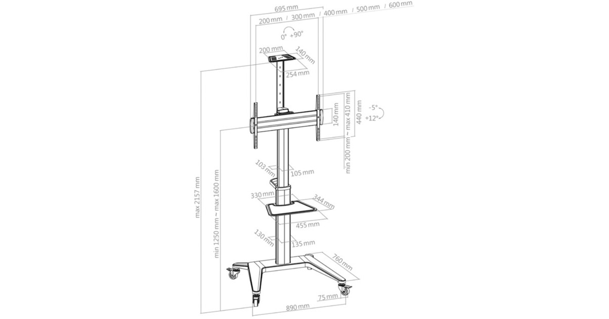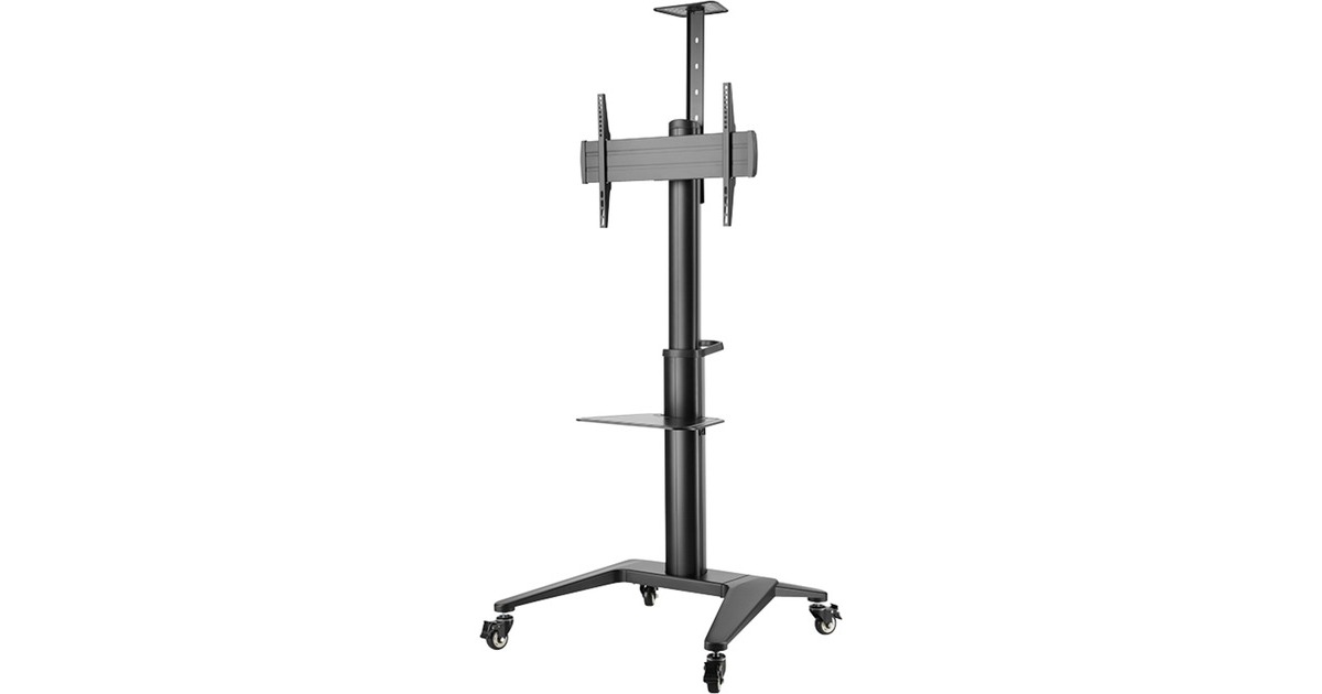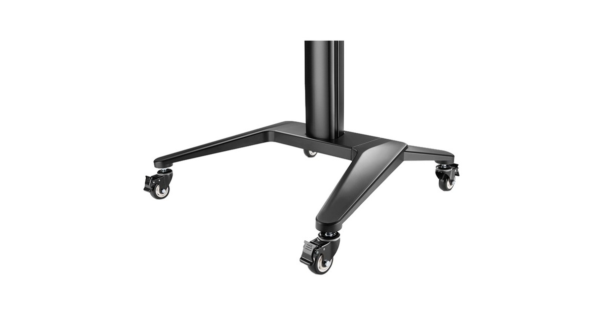 Der BrackIT Stand Single ist ein mobiles Standsystem für einen Einzelbildschirm von 106 - 165 cm (42 - 65"). Der Bildschirm kann, je nach Wunsch, in Landscape oder Portraitausrichtung genutzt werden. Durch die wertigen Lenkrollen lässt sich das System problemlos verfahren und durch die Feststellbremsen am gewünschten Zielort einfach und sicher fixieren. Dank des asymmetrisch geformten Rollenfußes ist es möglich das System auch nah an einer Wand zu positionieren. Die benötige Stellfläche beträgt dabei 890 x 760 mm. Die inkludierte VESA-Universalaufnahme umfasst die VESA-Normen bis max. 600 x 400 mm. Sie ist montageseitig entlang der Säulenhöhe höhenverstellbar, kann werkzeuglos von -5 bis +12° geneigt werden.Art.-Nr.: 1770139