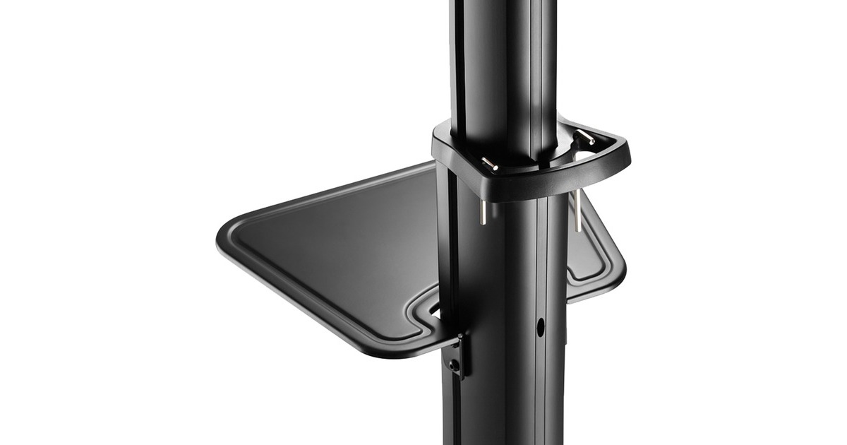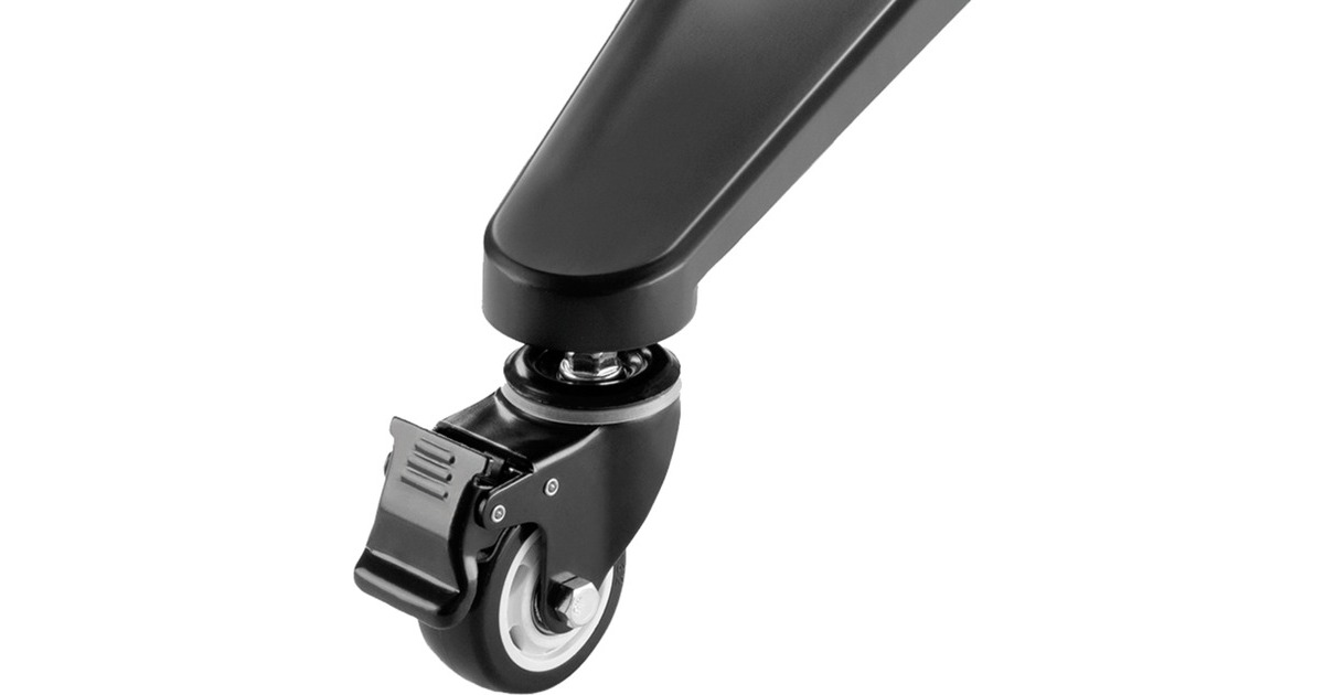 Lenkrollen mit Feststellbremse, Höhenverstellbare Kameraaufnahme, Ablage für AV-Equipment, Innenliegende Kabelführung |