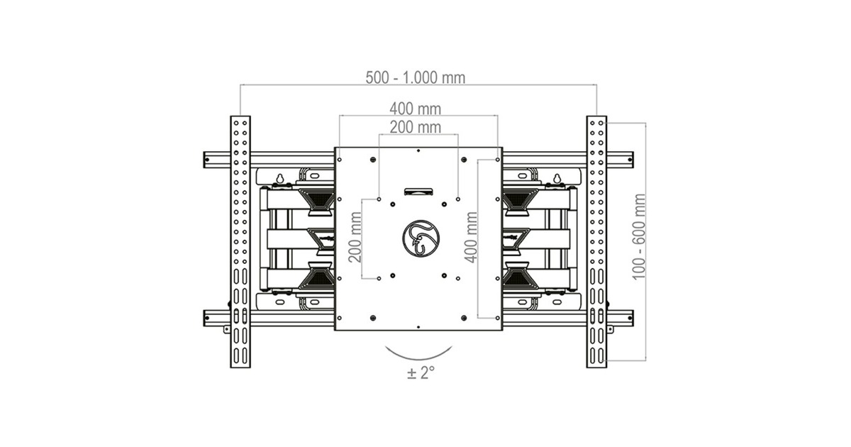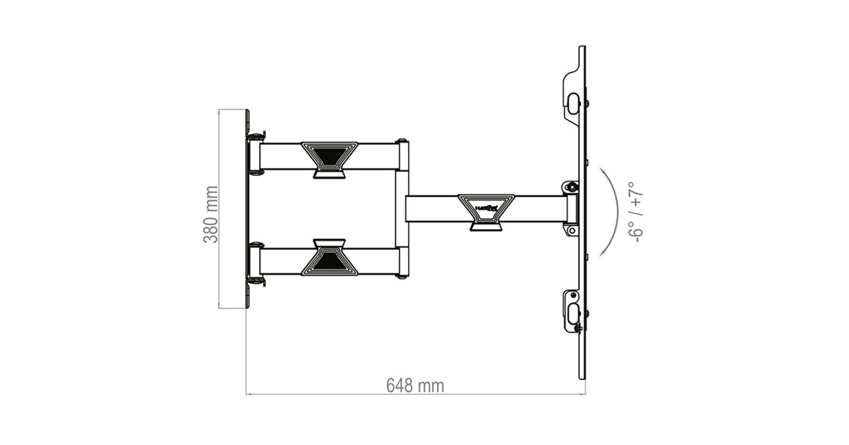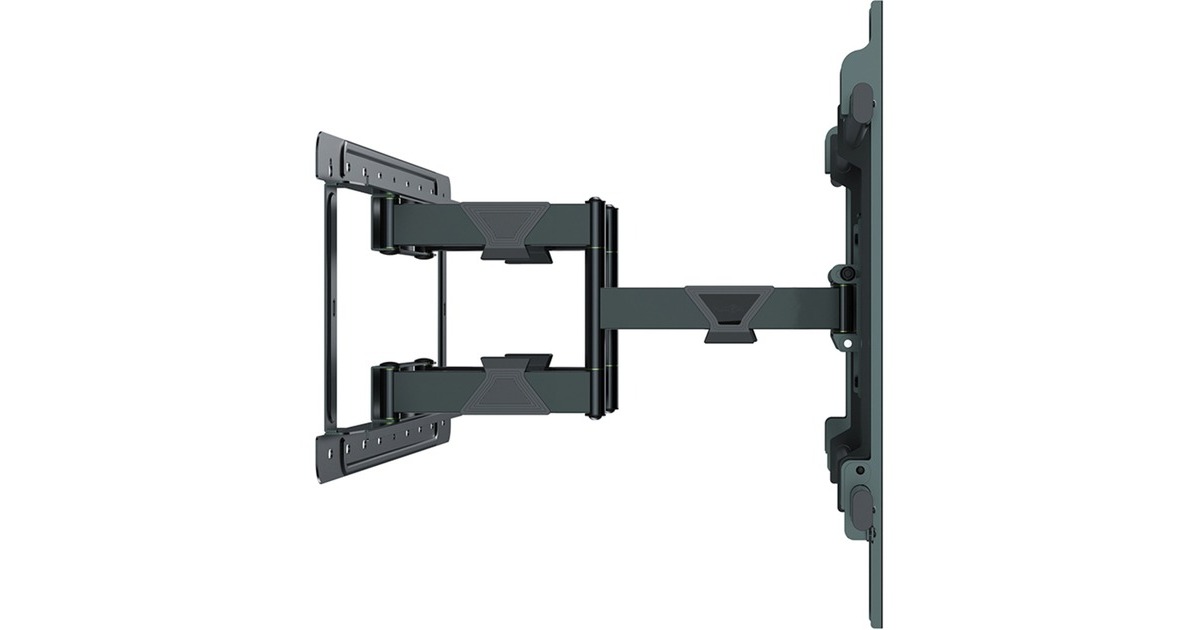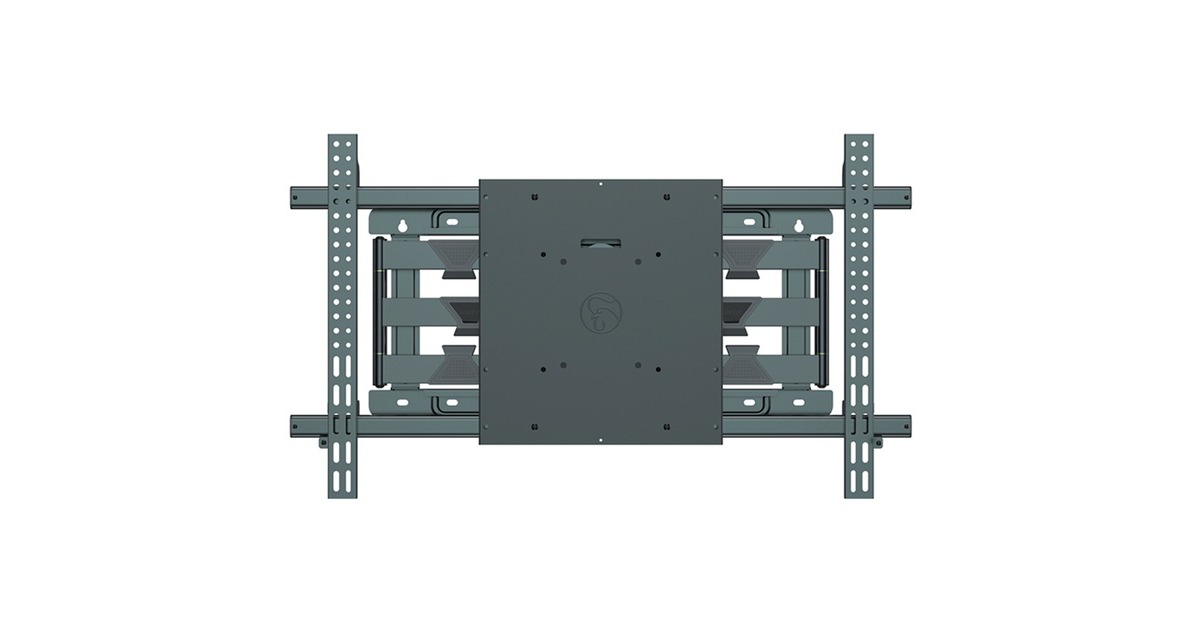 Die neig- und schwenkbare Wandhalterung BrackIT XXL HD II eignet sich für große Bildschirme mit 165 - 249 cm (65 – 98") Bildschirmdiagonale sowie einem Maximalgewicht von 140 kg. Die Montage kann wahlweise in Landscape- oder Portrait-Ausrichtung erfolgen und mit einem Wandabstand von 50 mm kann sie besonders flach montiert werden. Der Neigungswinkel der Halterung kann montageseitig stufenlos zwischen -6° und +7° variiert werden, zudem ist sie, abhängig von der Größe des montierten Bildschirms, bis zu ± 45° schwenkbar.Art.-Nr.: 1897463