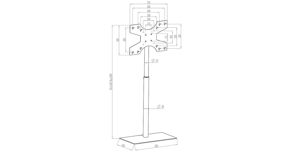 Das HAGOR Braclabs Standsystem eignet sich für einzelne Public Displays zwischen 81 - 140 cm (32 - 55") sowie einem maximalen Gewicht von 35 kg. Das Universal-System erlaubt eine Anbringung des Displays im Quer- oder Hochformat, dabei wird dieses einfach in die Halterung eingehängt. Die Höhe des Standfußes kann über den Griff komfortabel verstellt werden, wodurch eine optimale Ausrichtung des Displays möglich wird. Art.-Nr.: 1611255